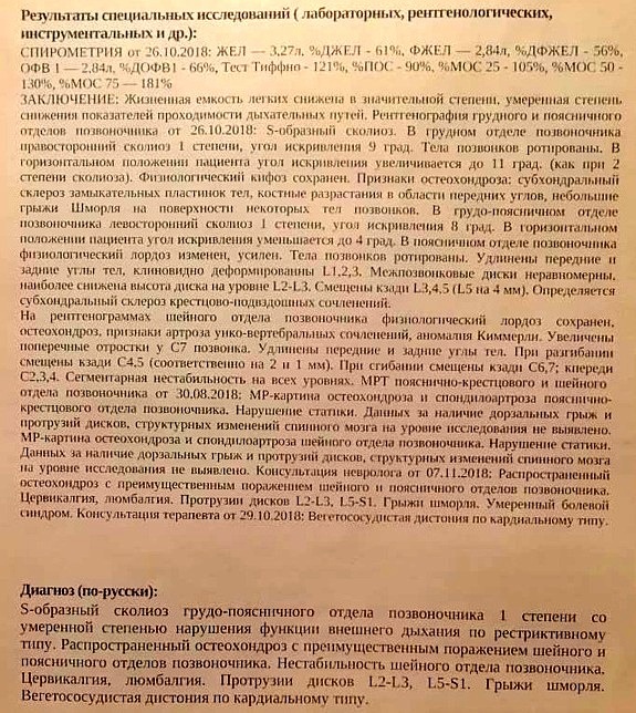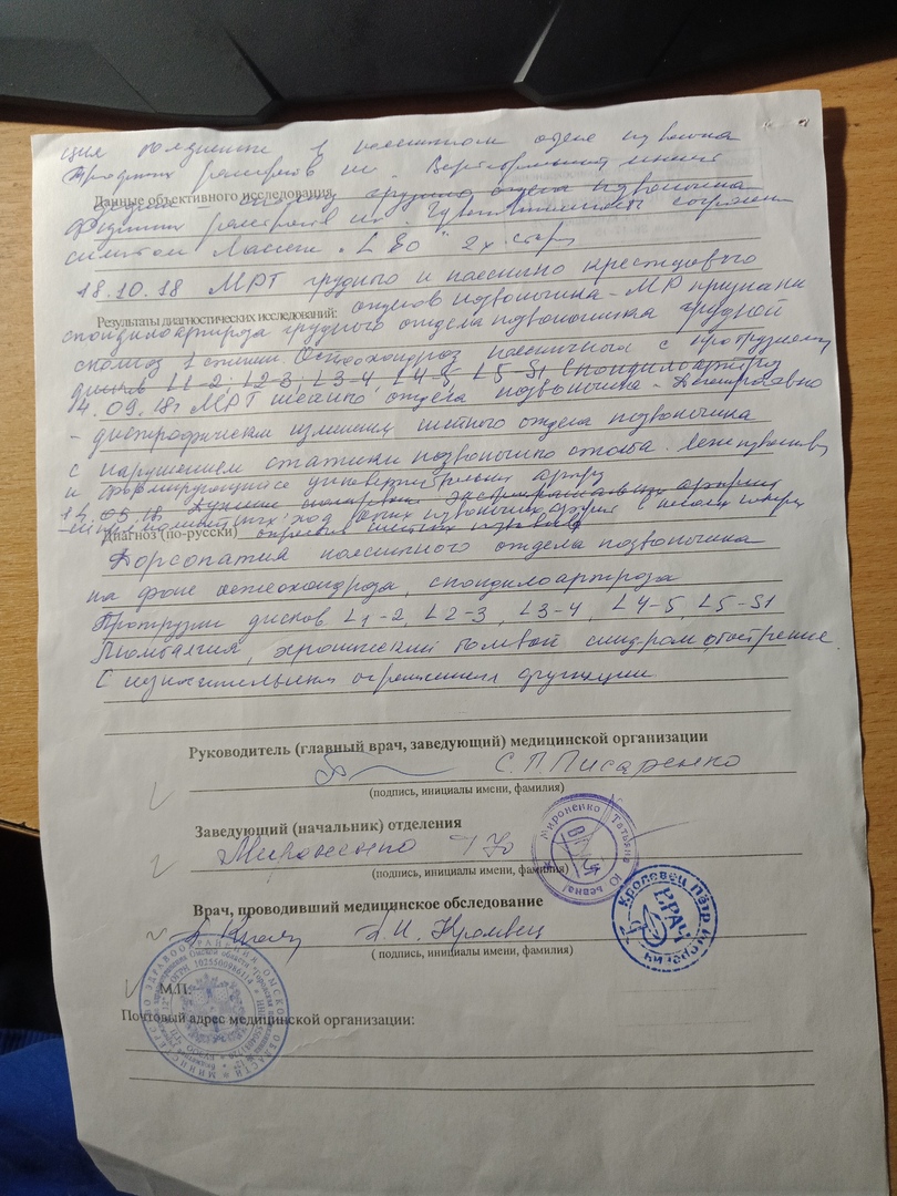 Этой осенью невролог поставил категорию годности Б-4. После этого я пожаловался к хирургу в военкомате на боли в спине, он отправил меня заполнять акт в мою больницу (Заполненный акт ниже), где диагноз по неврологии вновь подтвердился (акт в моей больнице заполнял хирург и невролог, т.к заболевание пересекается).