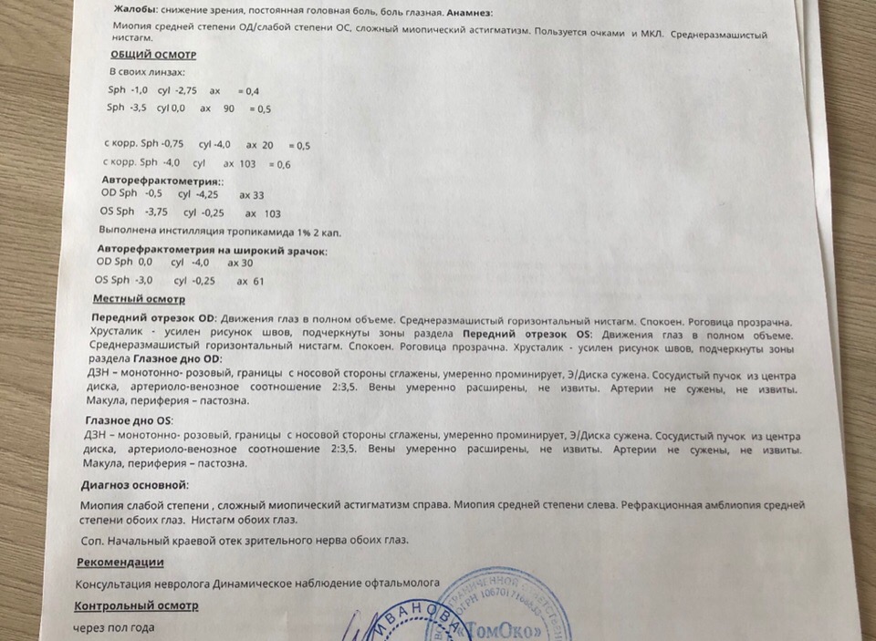 В Вашем случае, по результатам авторефрактометрии (на широкий зрачок), правый глаз: астигматизм с разницей рефракции в двух главных меридианах 4,00 дптр; При указанном астигматизме можно рассчитывать только на категорию годности «Б-3» (призывная категория годности;