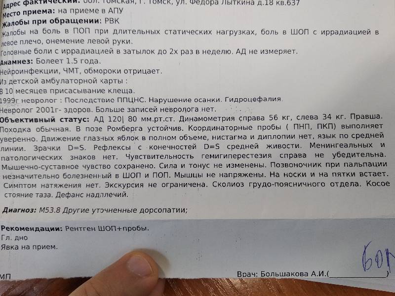 Доброго дня! Закончил магистратуру, начали слать повестки из военкомата. Заранее ходил на прием к хирургу, жаловался на боли в пояснице, отдающие в ногу. Записи в карте есть, рентген, МРТ. Военкомат направил на освидетельствование к хирургу по пояснице и по шее к невропатологу, так как сказал в военкомате что болит голова и шея, с болями и онемением левой руки. Тоже сказал и на приеме первичном у невролога.