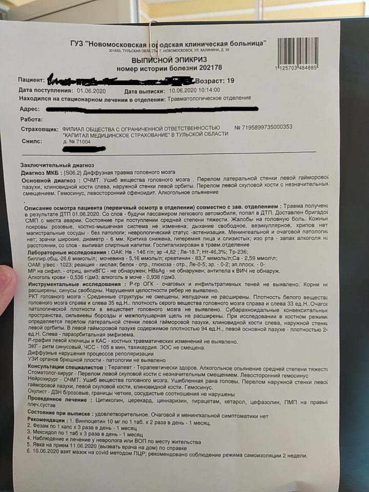 Попал ДТП (был пассажиром). В итоге ДТП получил повреждение головы. Диагноз прикладываю в теме.
