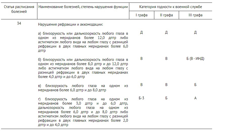 В Вашем случае, 3,0 дптр; - это означает, что статья 34 Расписания болезней не применяется, ограничений по годности к военной службе нет.
