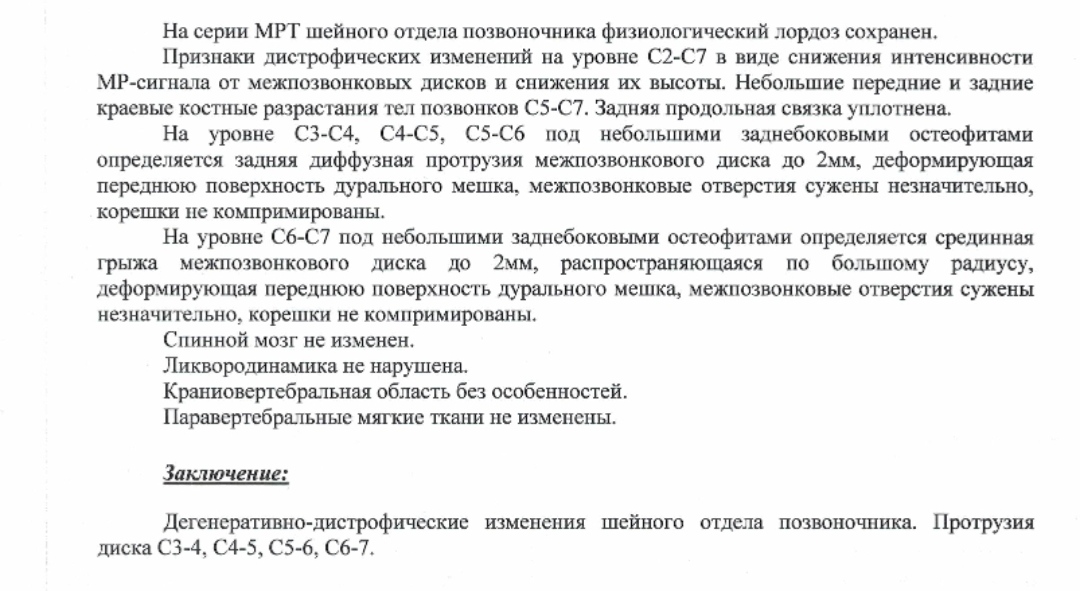 South66 писал(а):Сходил на МРТ шеи , там еще 2 протрузии есть. Итого уже остеохондроз с 3 и более поражениями.