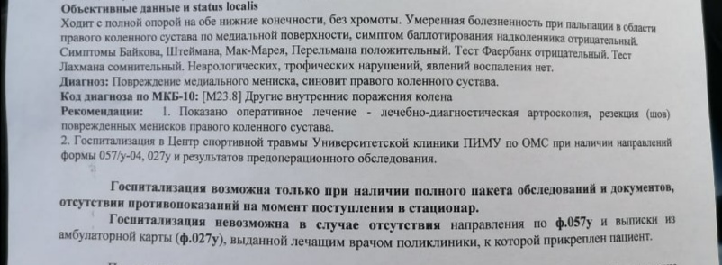 Re: повреждение мениска, операция