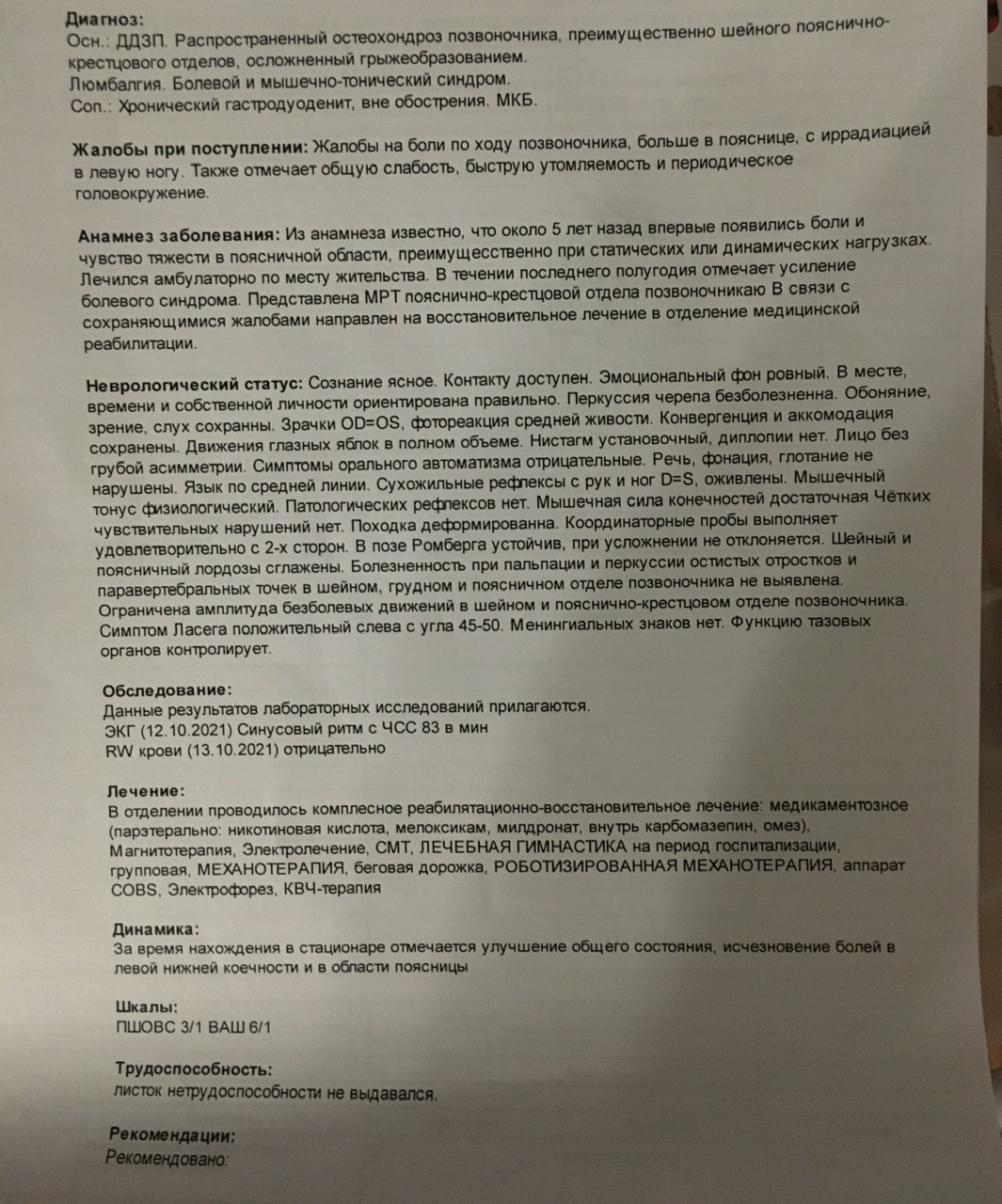 Aleksey95 писал(а):DmitryS писал(а):Вы писали: "С этими заключениями обращался к неврологу, на основании этого он переписал диагноз с заключения МРТ и направил на прохождение стационарного лечения. К неврологу обращался неоднократно в том и этом году, с болями в поясничном отделе, отдающими в левую ногу".