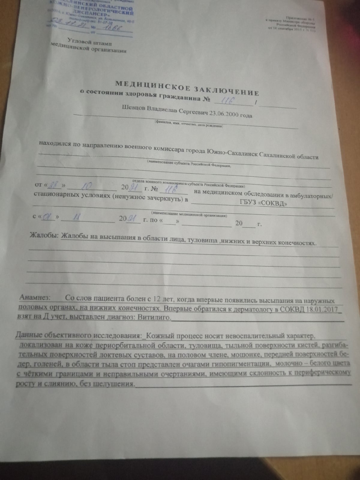 Фото заключения, на обратной стороне просто росписи и диагноз: Витилиго