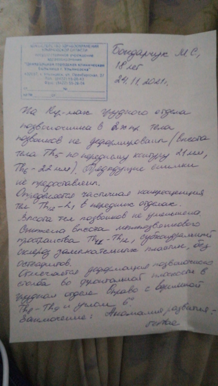 Оксана 77 писал(а):Здравствуйте, проконсультируйте пожалуйста заключение снимка , грудного отдела позвоночника. Годен ли сын для армии.