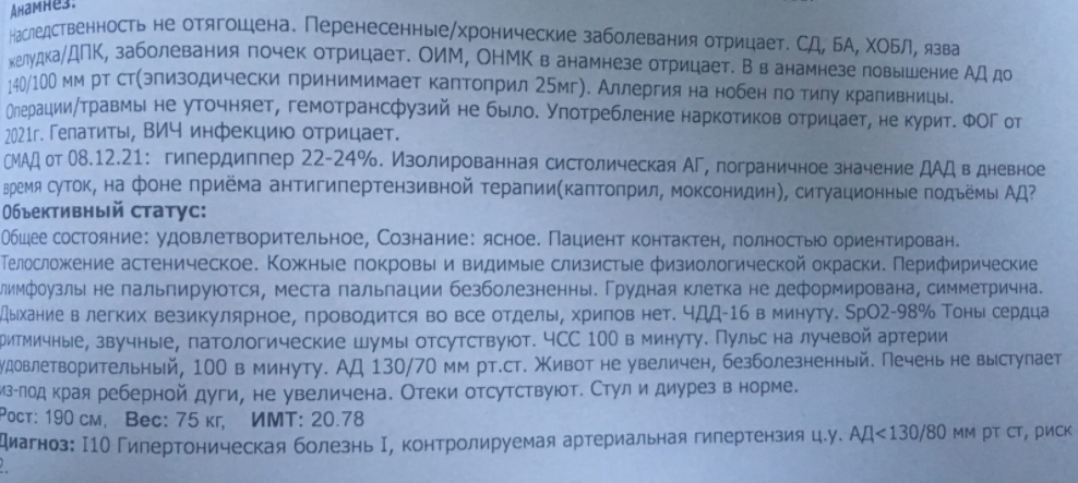 2. Не позднее чем за 6 месяцев до окончания действия отсрочки по учёбе вам необходимо выполнить минимум 1 СМАД не на фоне приёма лекарств по направлению терапевта и (или) кардиолога в больнице по месту жительства. Среднесуточное АД по результатам СМАД'а должно получится не ниже 140/90.