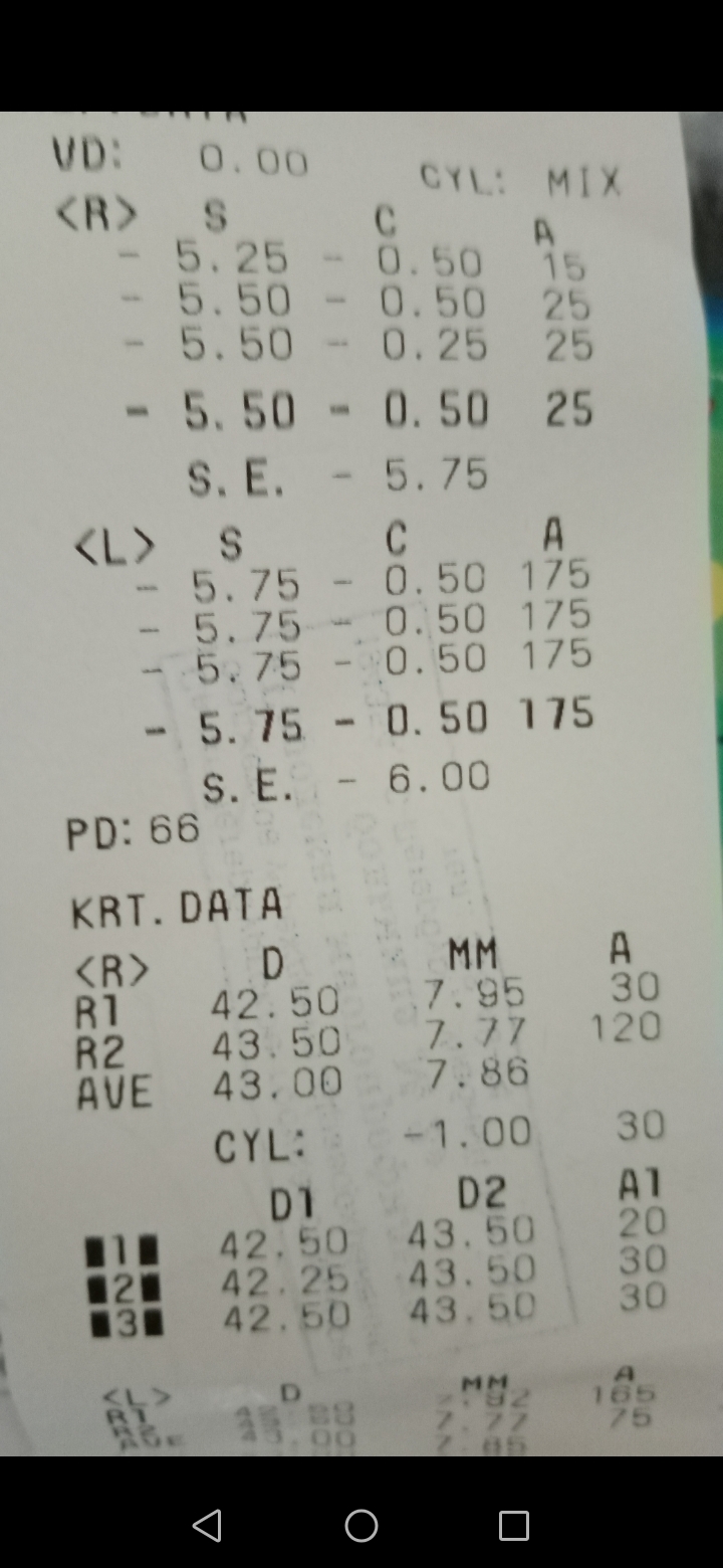 Eqobu писал(а):Мне проверяли зрение с помощью рефрактометра. У меня на левом глазу получились следующие значения: