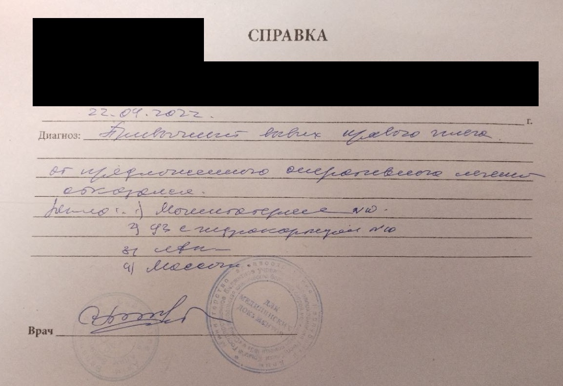 Пообщались, в итоге выписал вот такую справку. Назначил лечение физиотерапию, т.к от операции я отказался (Но он сам предложил попробовать начать с массажа, нарастить мышцы, сказал есть шанс что все пройдет и без операции.)