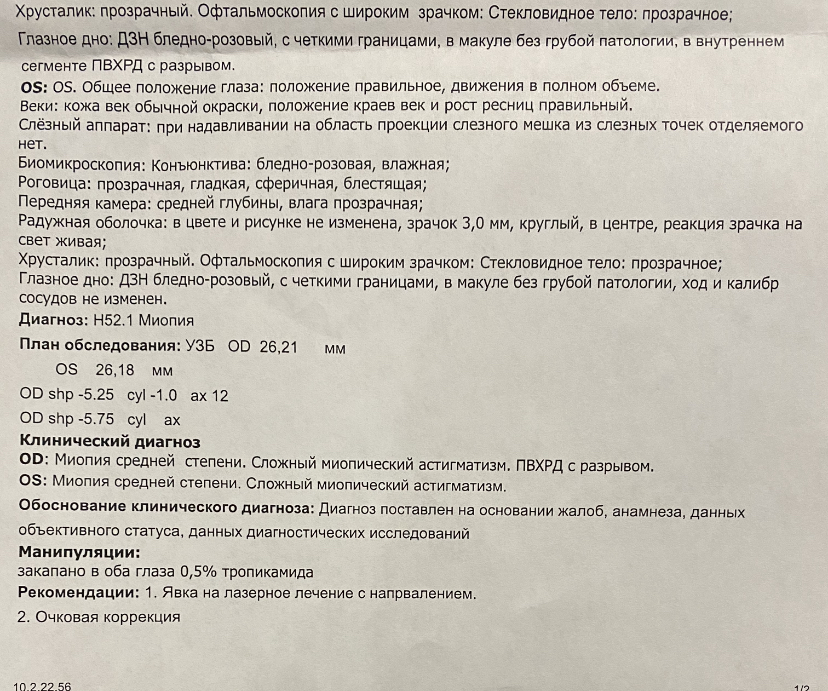 Добрый день, получил от военкомата направление на обследование в главной региональной клинике. Результаты заключения следующие. Итоговые измерения проведены после расширения зрачка. Подскажите, если в заключении не упоминается высокая степень миопии, то в случае миопического астигматизма будут отдельно определять категорию по близорукости и отдельно по астигматизму? Результаты на правом глазу sph -5.25 cyl -1.00. На какую категорию вообще можно расчитывать при таком диагнозе?