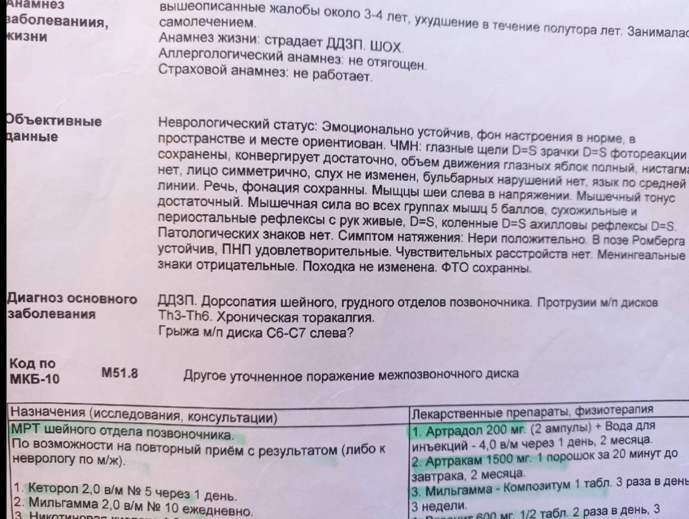 диагноз : остеохондроз грудного отдела позвоночника, с дорзальными протрузиями Д3-Д6, дорсалгия