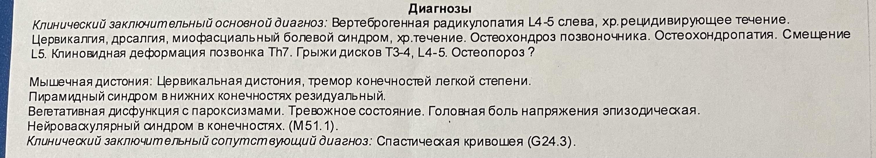 Mrwizard901 писал(а):Добрый вечер! Обновил диагноз у невролога перед военкоматом, получилось вот так. Сделал почти все обследования, которые рекомендовал невролог. ЭНМГ ничего не показало, невролог об этом сказала, но все равно написала радикулопатию. С данными диагнозами больше перспектив?