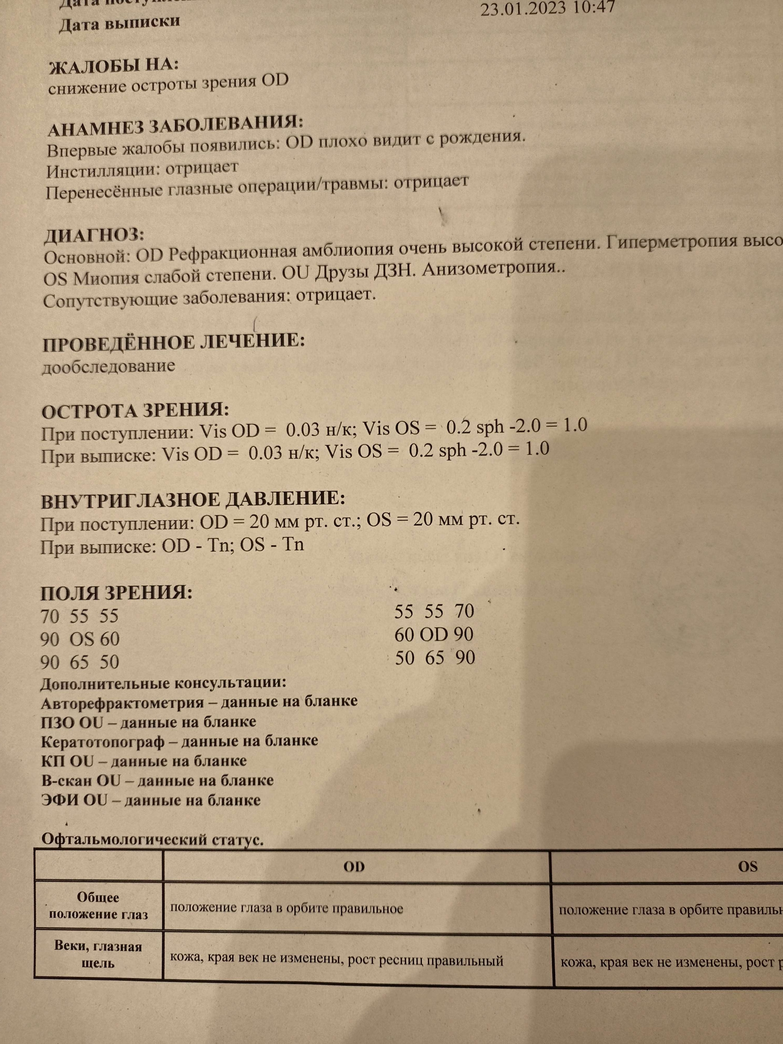 Окулист районного военкомата сомневается в диагнозе, ссылаясь на то что с таким заболеванием у меня должны быть какие-либо отклонения, а во всех обследованиях у меня все в пределах нормы. Также я напомнил о процедуре направления призывника на обследование. Окулист писать заключение со своими сомнениями отказался.