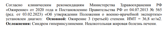 ForestLive писал(а):Здравствуйте, обследовался в больнице от военкомата, поставили диагноз, ожирение 3 степени с осложнениями. Подскажите пожалуйста хватает ли, диагноза и осложнений для получения категории В? Скорее всего дадут отсрочку на 6-12 месяцев?