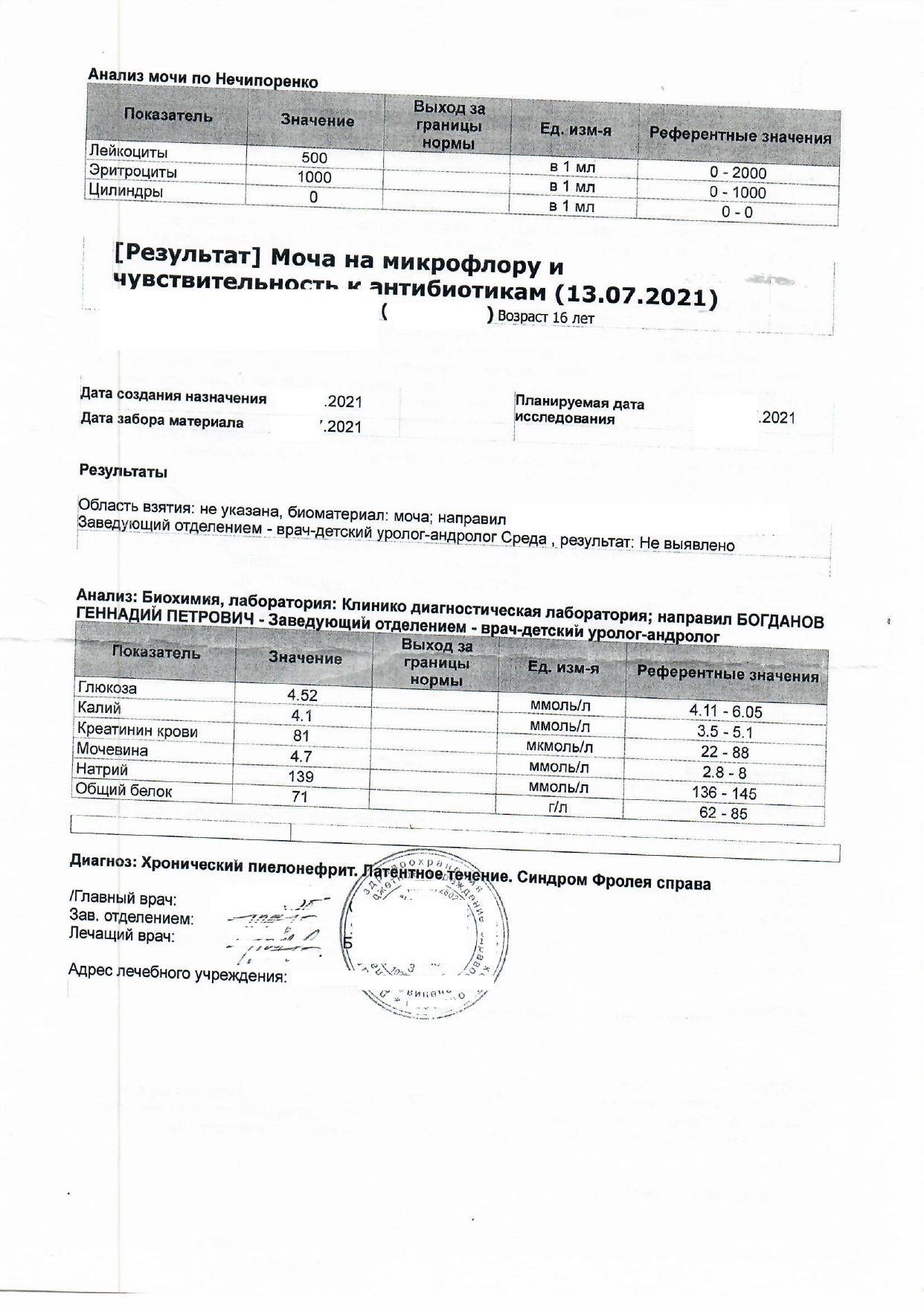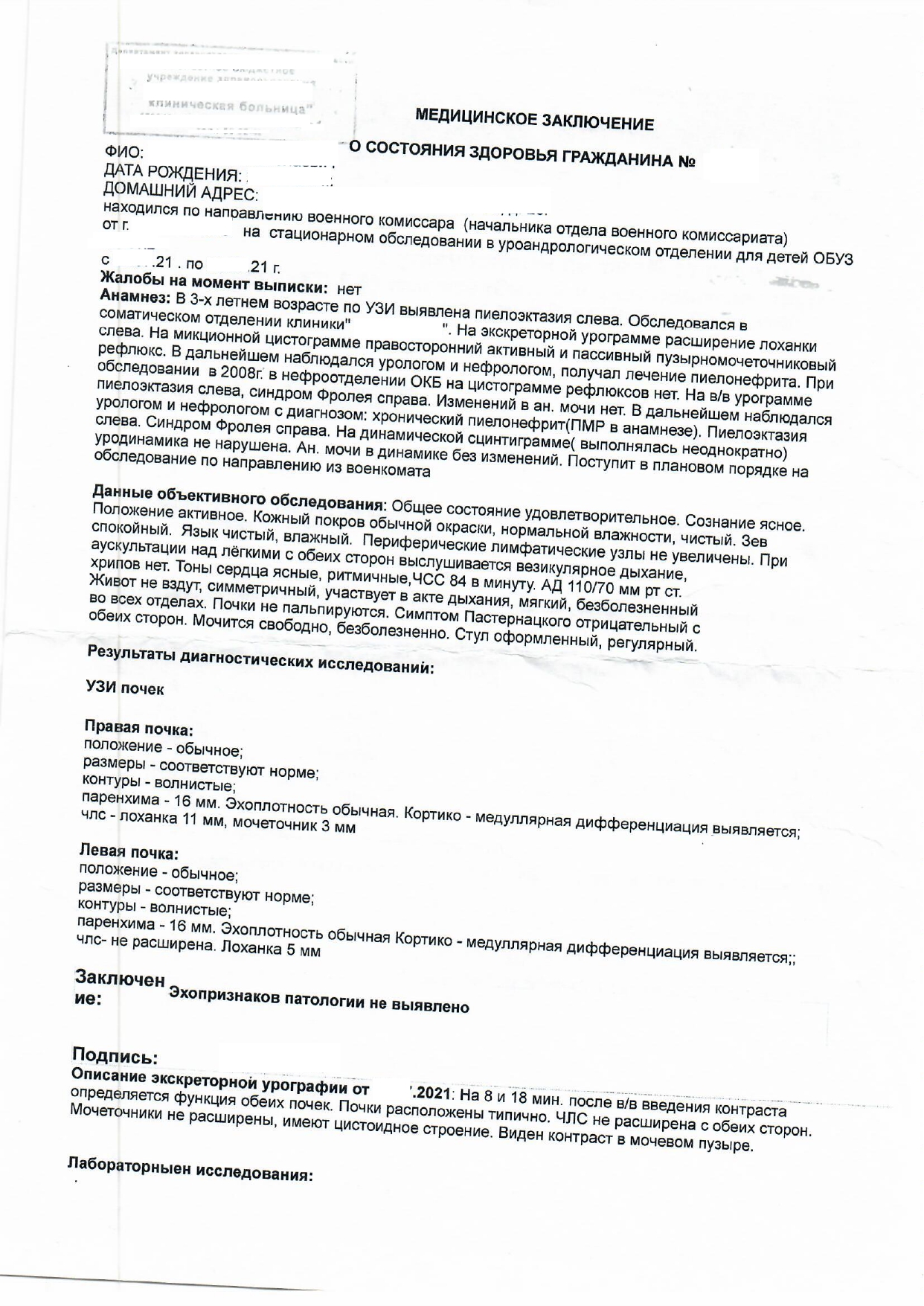 Здравствуйте. Обследовался в больнице в 16 лет, поставлен диагноз Хронический пиелонефрит. Латентная форма. Синдром Фрейли справа.