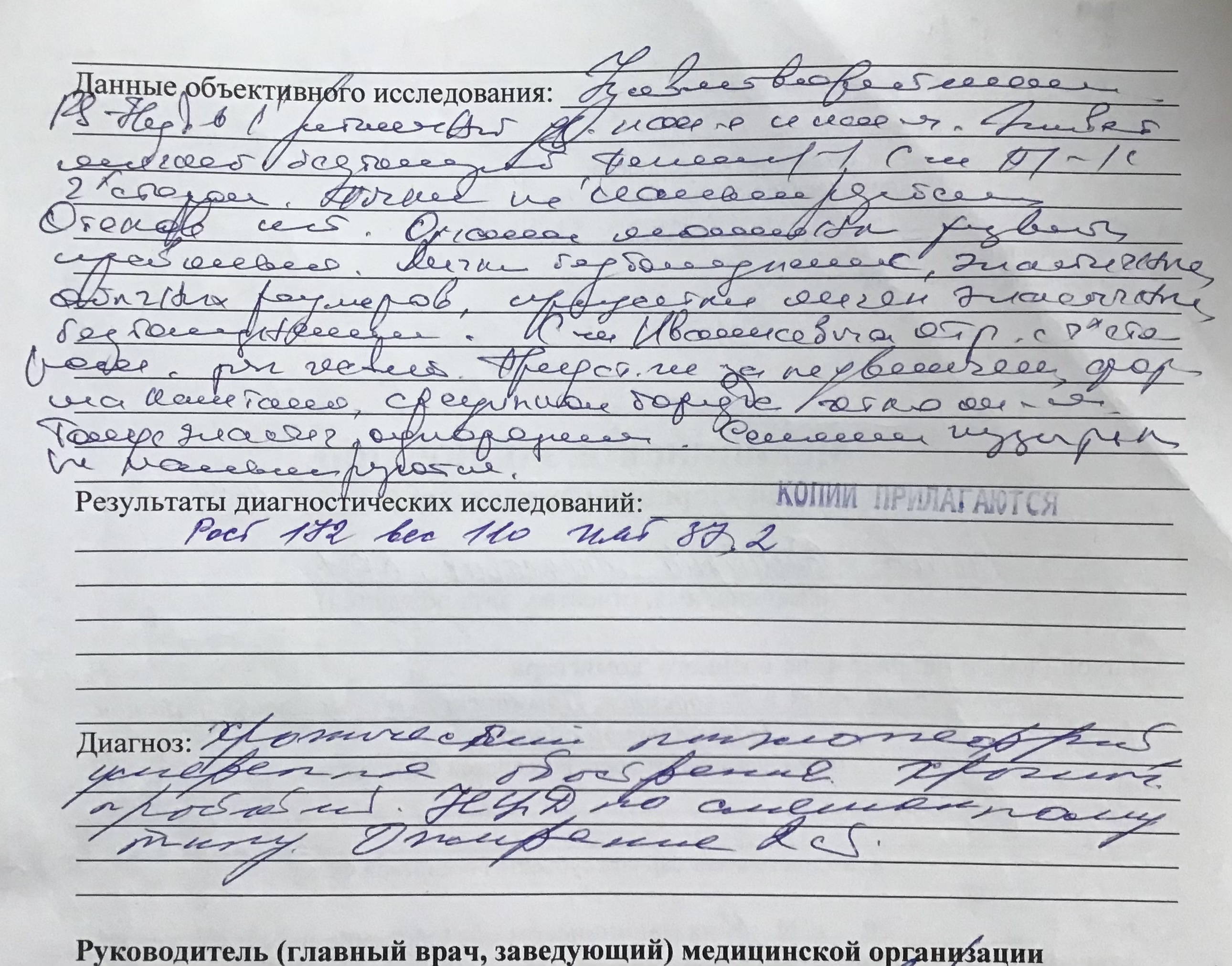 Aleksey95 писал(а):Опубликуйте фотографию медицинского заключения врача-нефролога (и при наличии - уролога), у которого вы обследовались по направлению военкомата. Желательно печатную, а не рукописную версию (если есть).