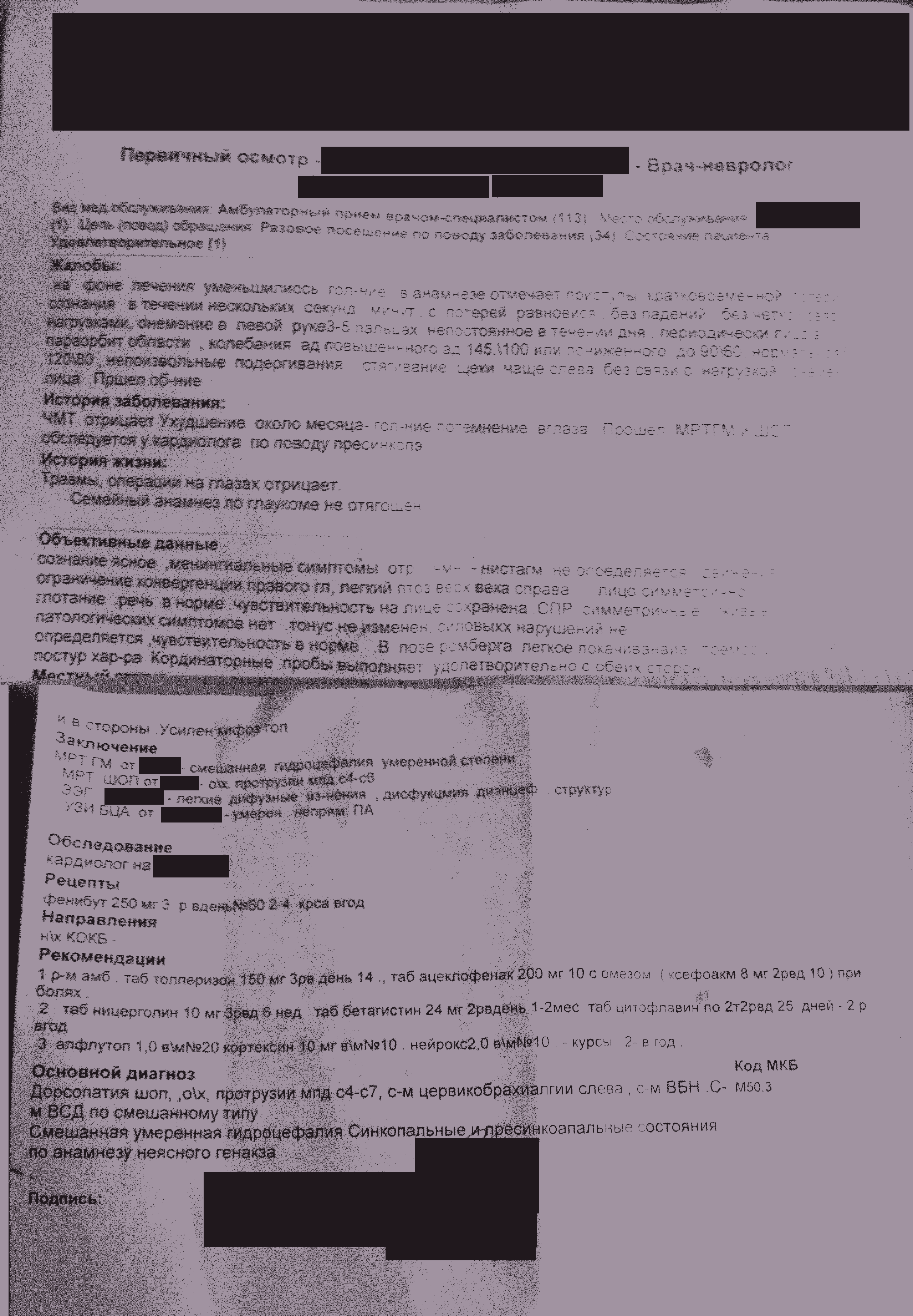 Сиптоматика следующая: регулярные онемения различных частей тела, преимущественно выше шеи, парез лицевых мышц, тошнота, проблемы с глоткой, языком, лицом и глазами (ком в горле, нарушения глотания, чувство удушья, незначительное ухудшение зрения), предобморочные состояния, нейропатические боли по всему телу (чувство жжения/холода) и боли в шее/затылке. Проявляется это всё при длительном пребывании в вертикальном статичном положении. За это время 3 раза вызывал СМП по поводу разных симптомов. На текущий момент меня хотят планово положить в мед. стационар.