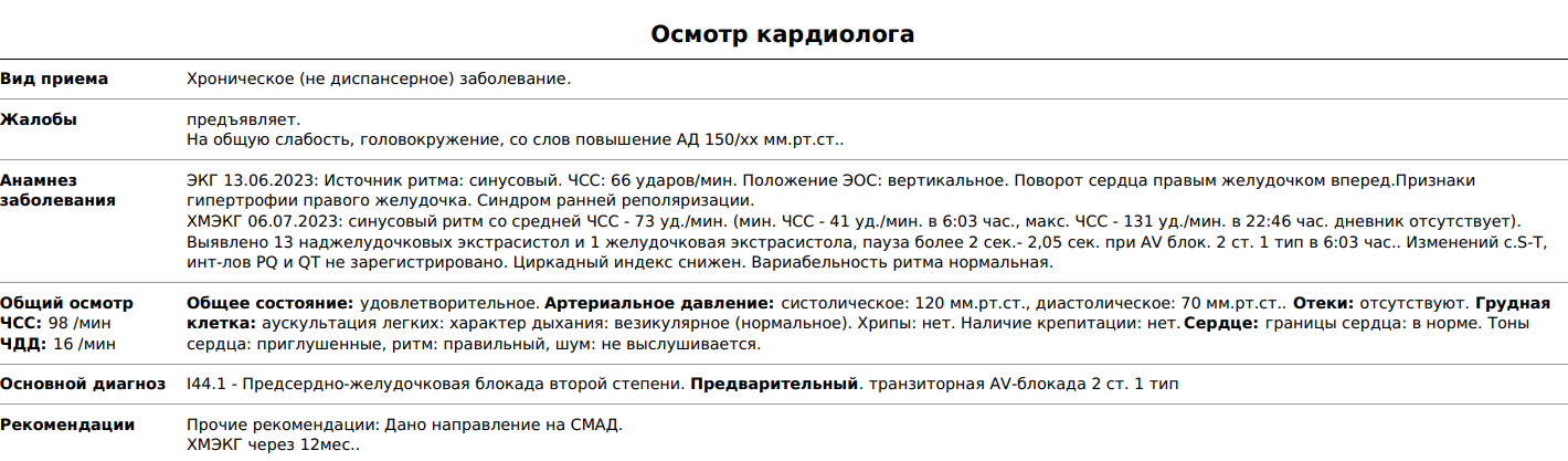 I44.1 - Предсердно-желудочковая блокада второй степени