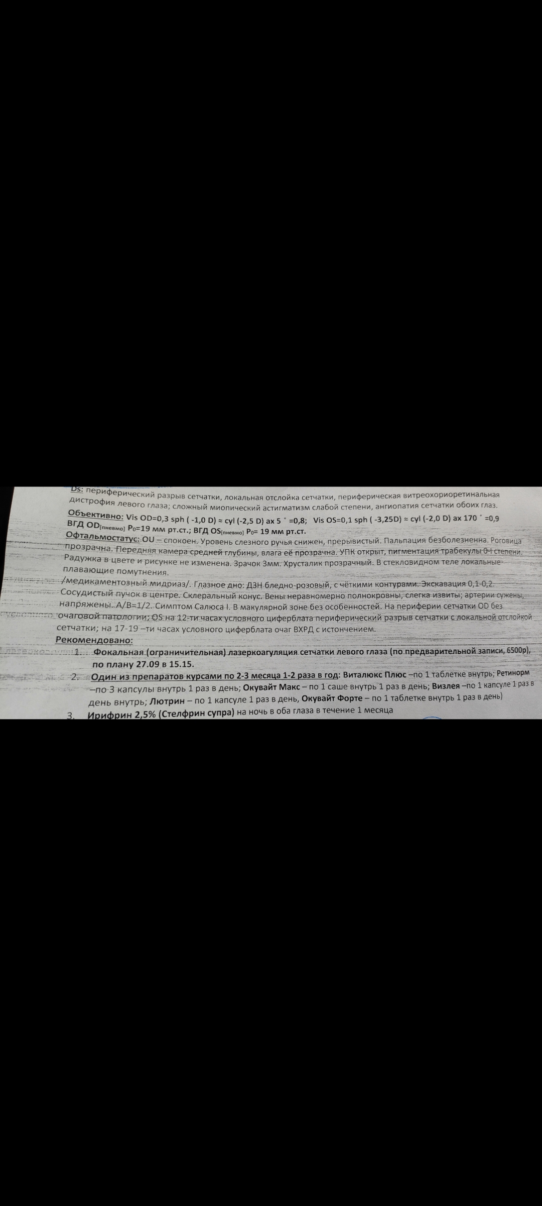 Я правильно понимаю, что 27 сентября 2023 года вам будет выполнена лазерная коагуляция сетчатки?