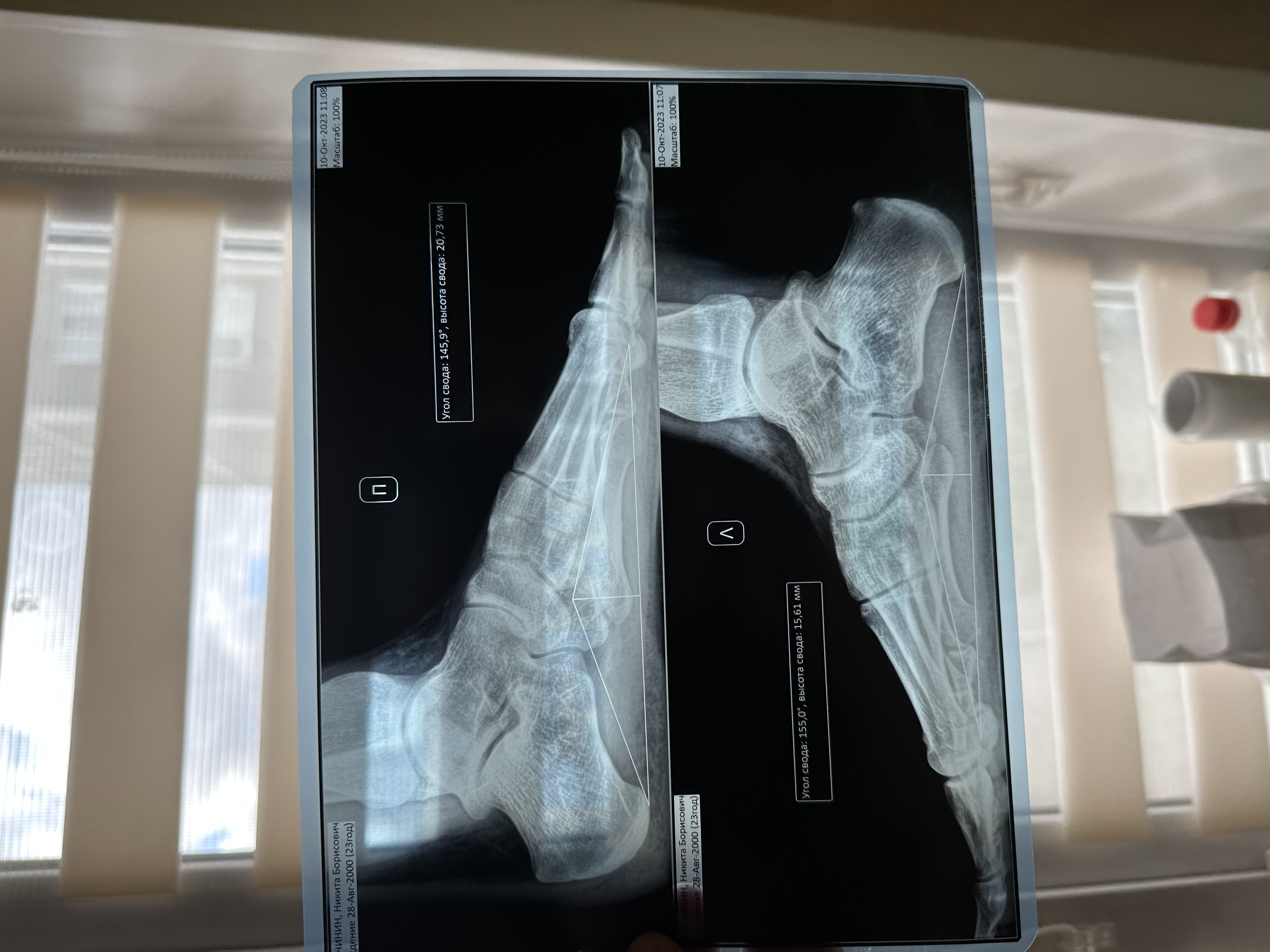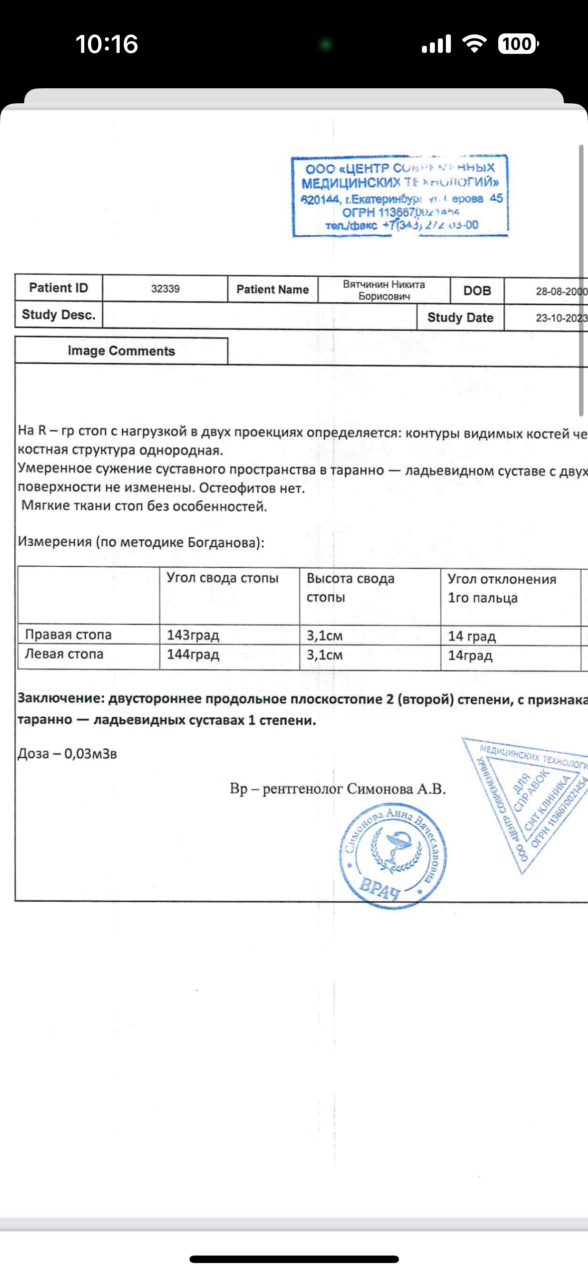 Так же сходил сделал повторный ренгтен стоп в платной больнице - результат удивил. Результат почти такой же как ровно 9 месяцев назад, на ренгтене не было никакой опоры чтобы стоять ровно, да и вообще вся процедура выглядела очень странно. Там же сделал копию результата от января месяца. И выходит так что плоскостопие прыгало от 144 градусов до 155, а потом обратно до 144.