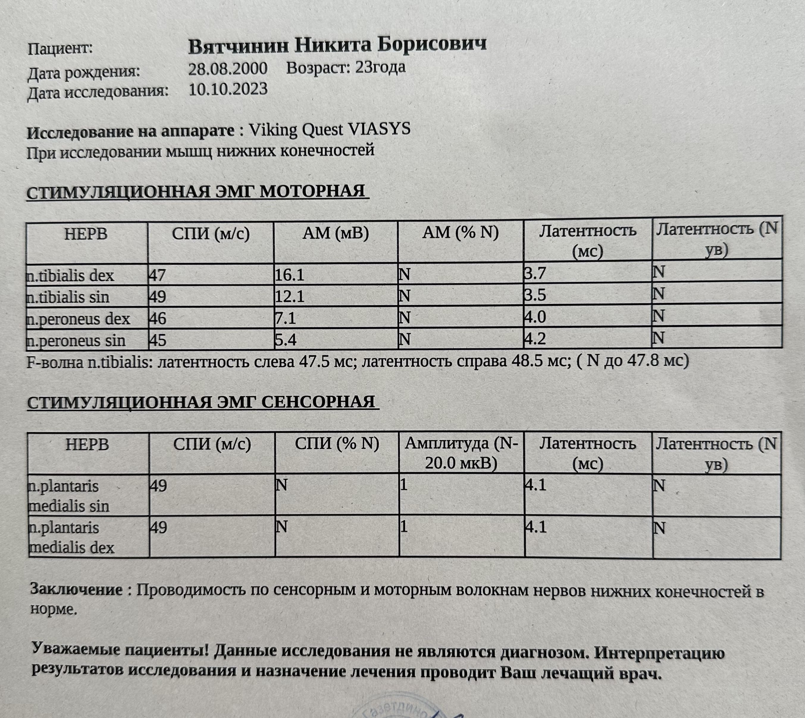 На сейчас имею две стимуляционные миографии.