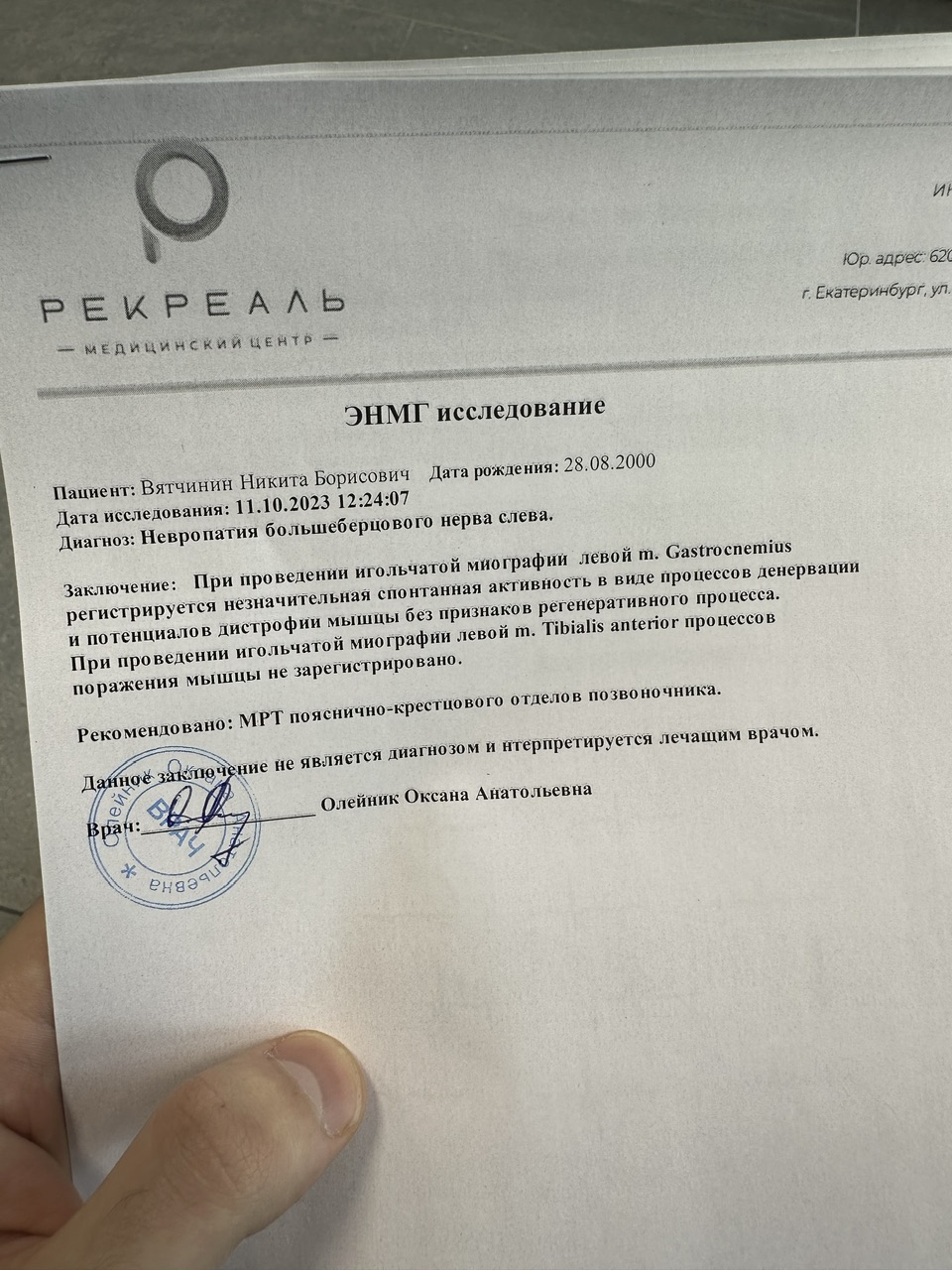 По невропатии направили на мрт пояснично-крестцового отдела, а далее к неврологу.