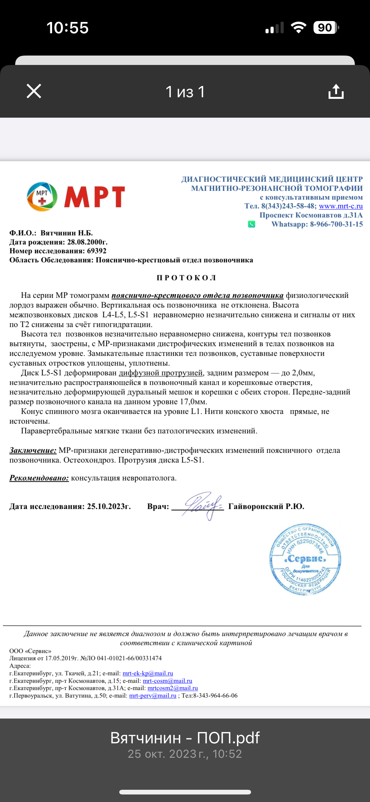 Сегодня сходил на мрт, прикладываю результат, дальше пойду к неврологу.