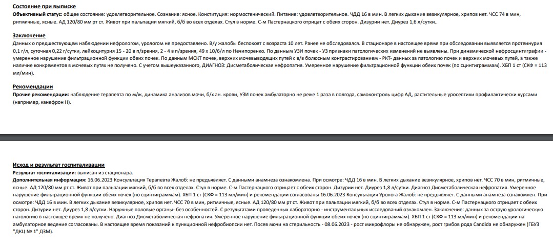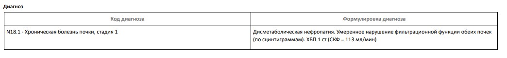 yoluqolo писал(а):Добрый день, интересует ответ на вопрос по поводу категории годности. Проходил обследование в стационаре, по результатам обследования написали следующий диагноз - Дисметаболическая нефропатия. Умеренное нарушение фильтрационной функции обеих почек (по сцинтиграммам). ХБП 1 ст (СКФ = 113 мл/мин).