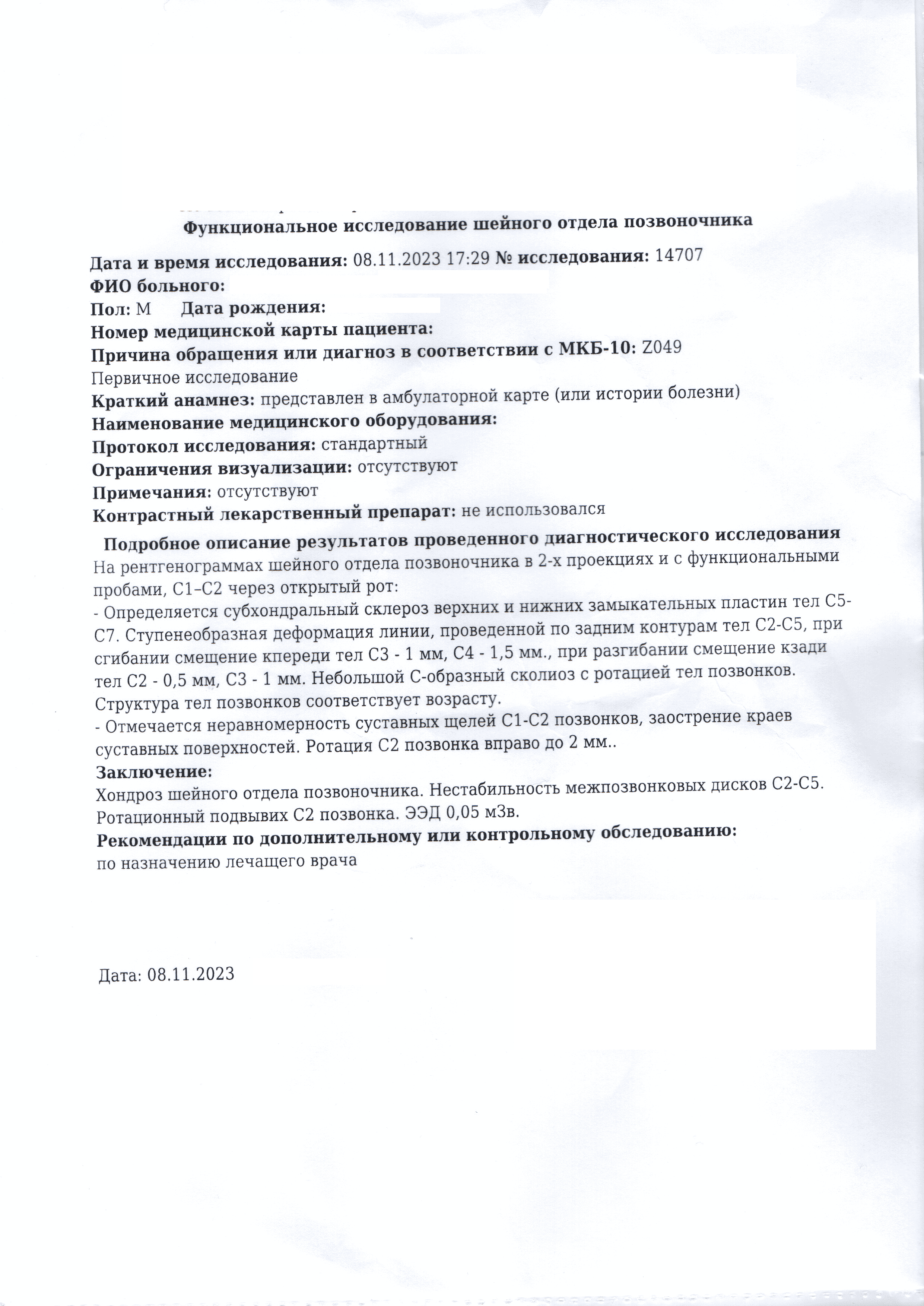 Вертеброгенная цервикалгия/ Остеохондроз ШОП/ Нестабильность