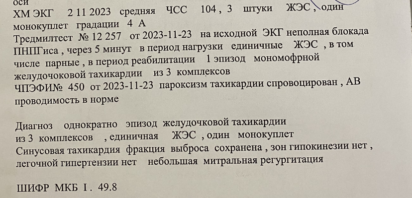 Добрый день! Есть небольшие проблемы с сердцем, недостаточность митрального и трикуспидального клапанов 1 степени. Назначали холтер ЭКГ, я его прошел, по результатам выявлены 3 полиморфные желудочковые экстрасистолы, из них 1 монокуплет (Градация 4А по Лауну). Также один раз был «нерегулярный ритм».