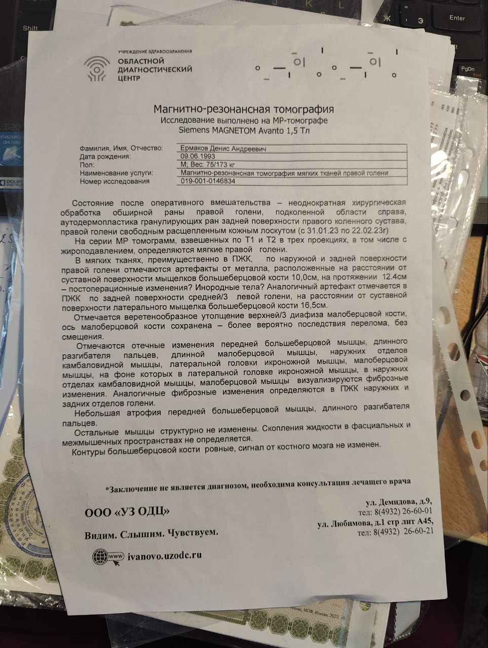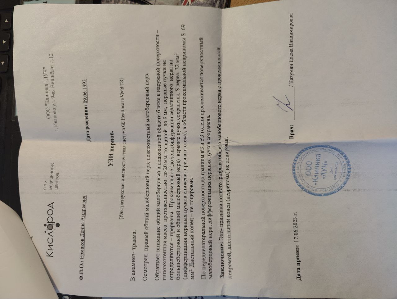 Вот ещё результаты МРТ и УЗИ нерва.
