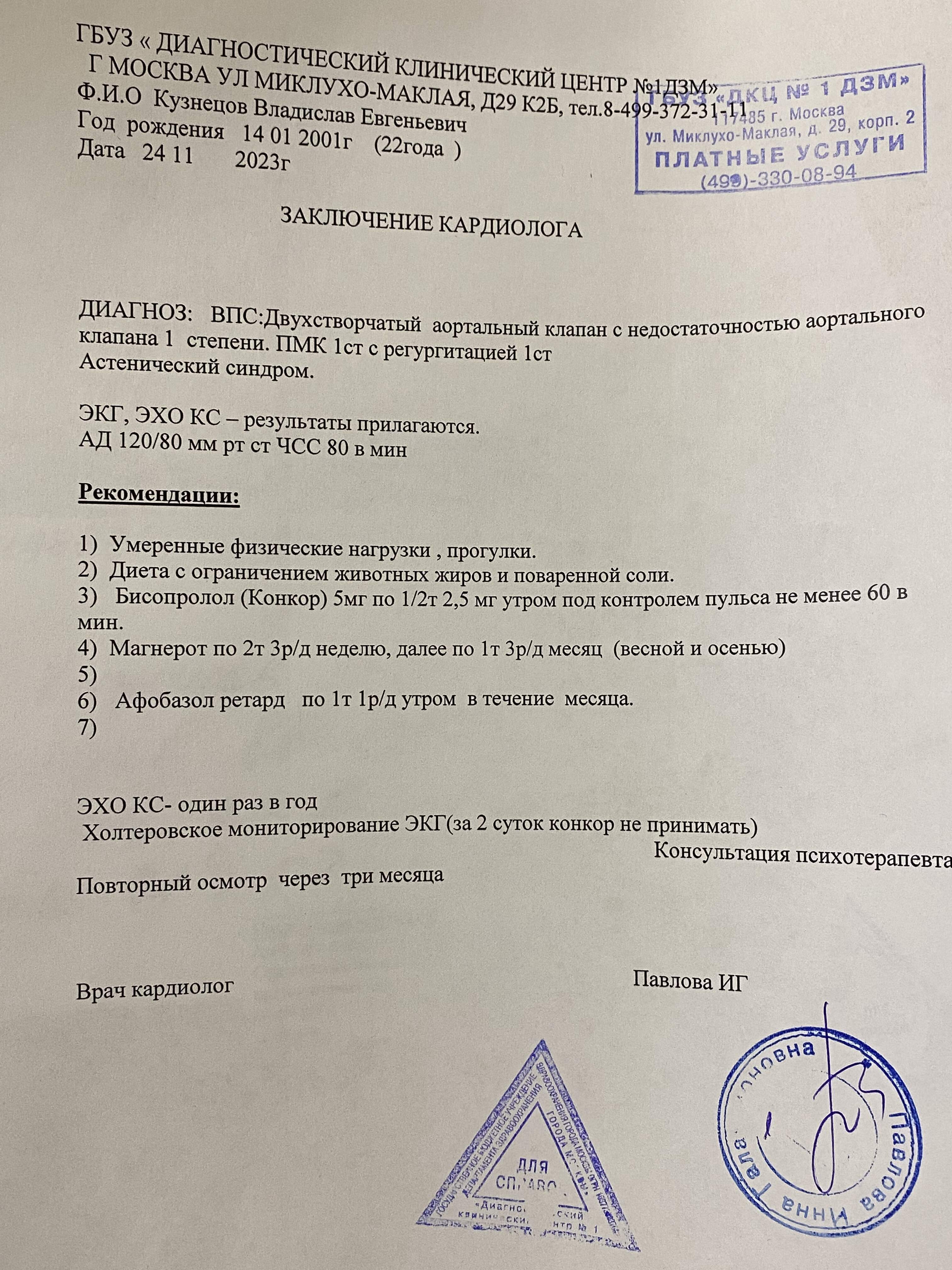 Сегодня получил заключение кардиолога из государственного учреждения: