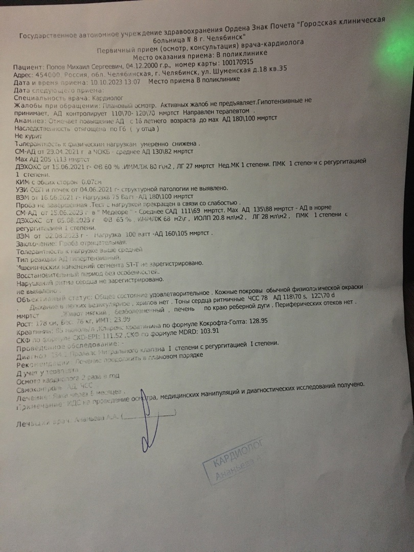 rias писал(а):Здравствуйте, в 2021 году проходил медкомиссию в военкомате, врач терапевт направил на доп. Обследование, где был поставлен диагноз гипертоническая болезнь 1 степени. Спустя 2 года, снова прошёл обследование которое включало: смад, эхо, вэм и тд. Кардиолог снял диагноз. Хотел бы у вас поинтересоваться, достаточно ли одного заключения, для дальнейшего переосвидетельствования? Или лучше ещё год-полтора проходить обследования?