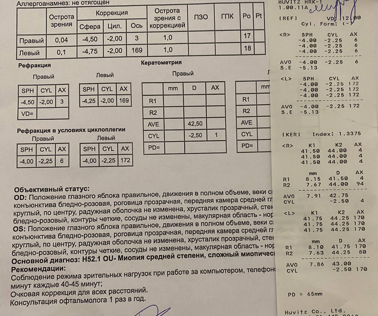 Aleksey95 писал(а):Рефракция в условиях циколплегии - "sph" и "cyl" складываются между собой.