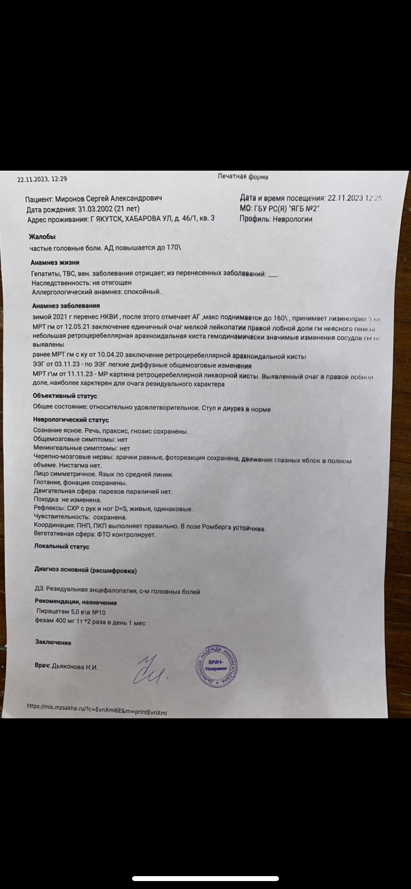 Еще по результатам МРТ невролог в личной карте военкомата для мед.комиссии поставил «категорию 23.г/у»