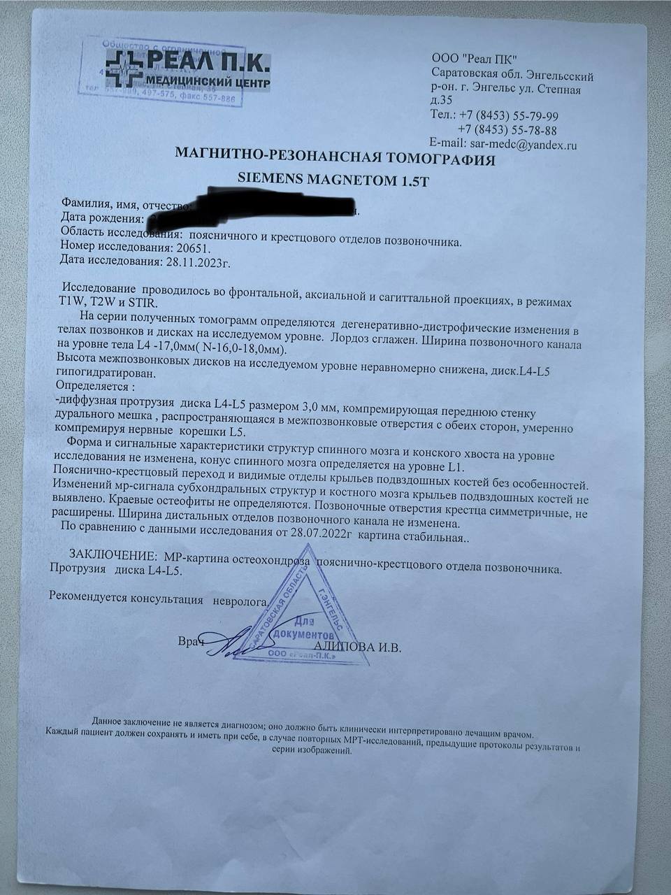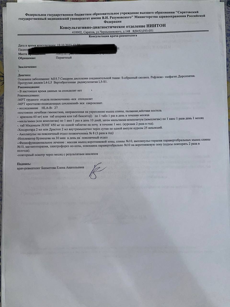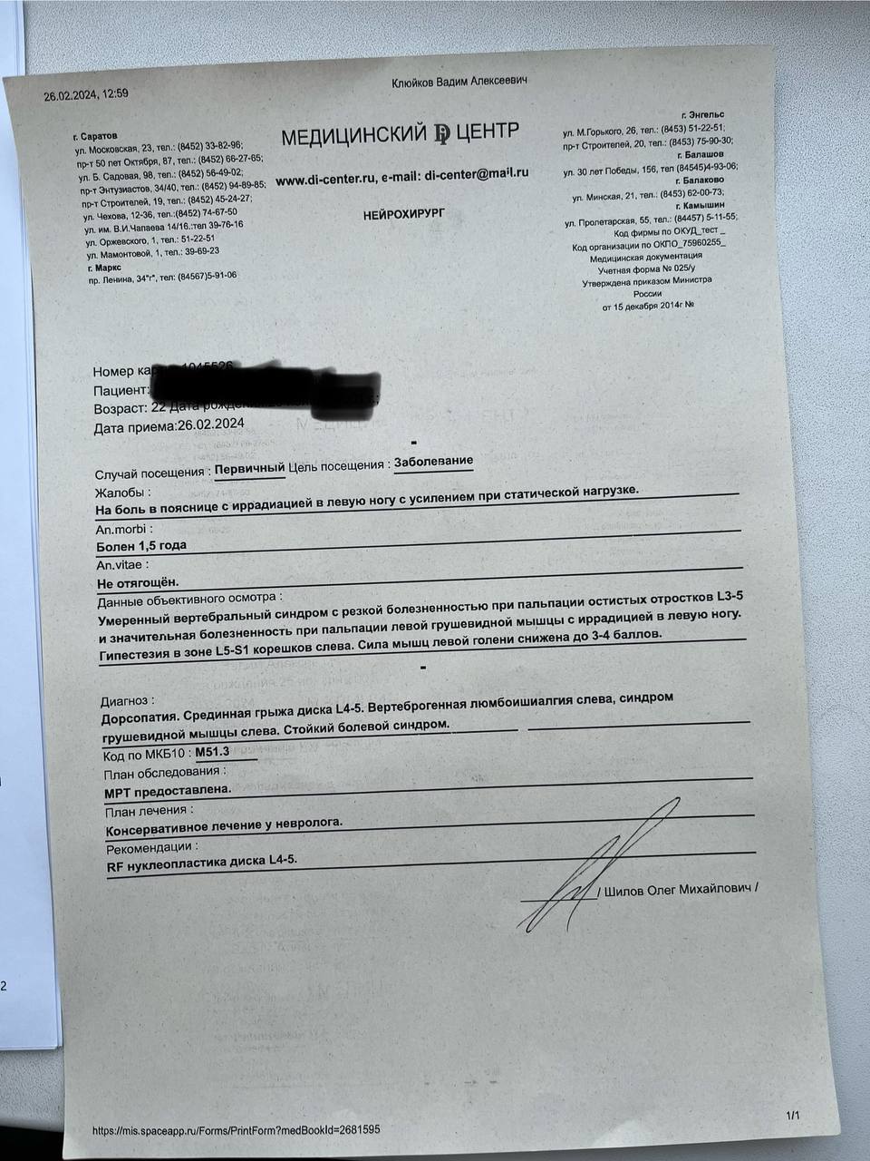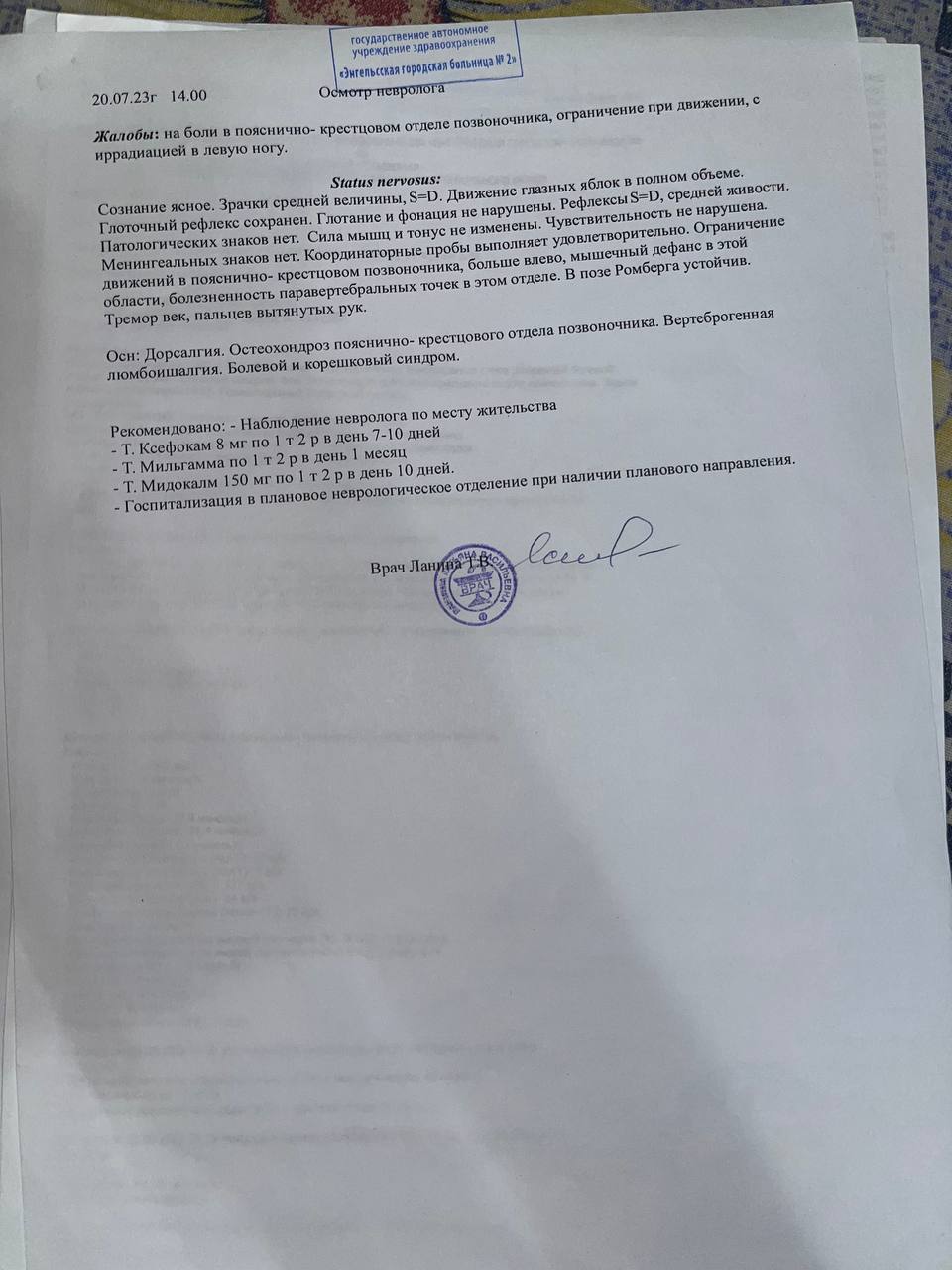 То есть по человечески и по всем правилам проводят осмотр и у них нет сомнений в том что у меня радикулопатия.