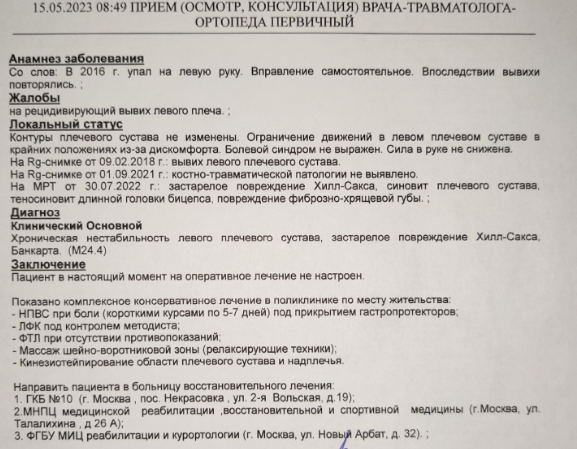 razied_soll писал(а):Здравствуйте! Подскажите, пожалуйста, возможно ли получить категорию B с данным заключением врача ортопеда-травматолога ? Заключение было выписано на основе МРТ левого плечевого сустава. Записей о вывихах нет, так как сам вправлял. Но насколько я знаю, вроде достаточно МРТ + заключение врача.