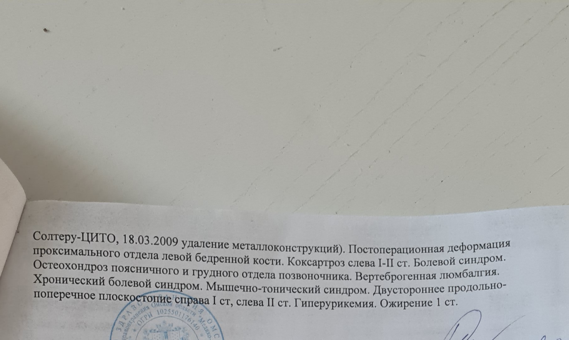 Re: Вывих бедра,плоскастопие,коксартроз и т.д