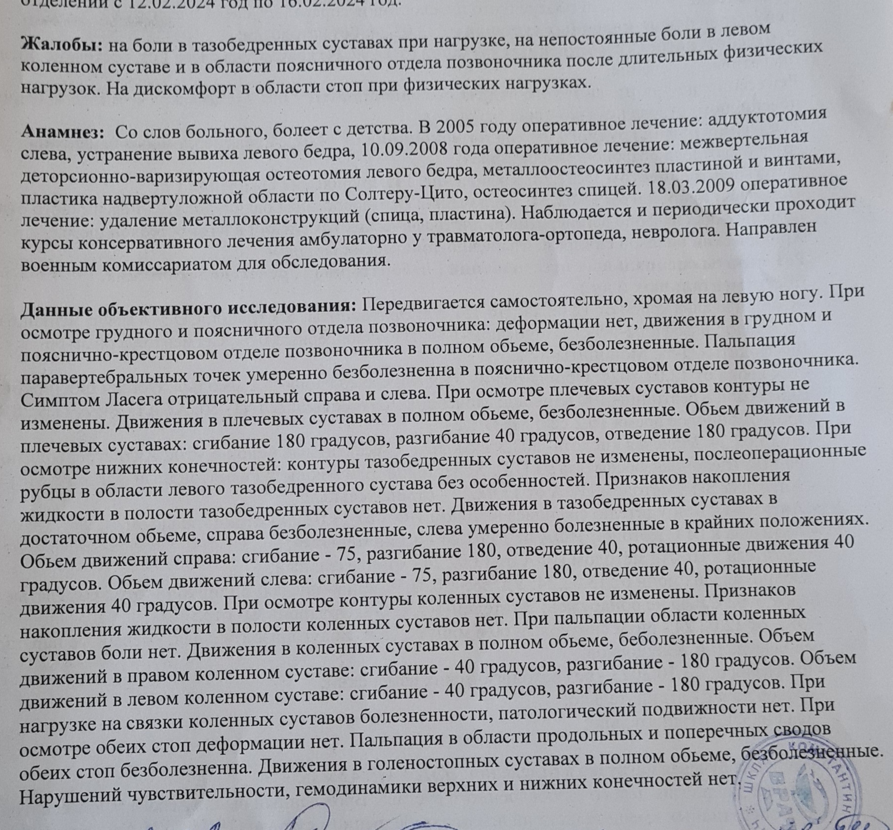 Медкомиссию прошёл по назначению военкомата.Диагнозы в файле.Сын в школе на физкультуру не ходил совсем.