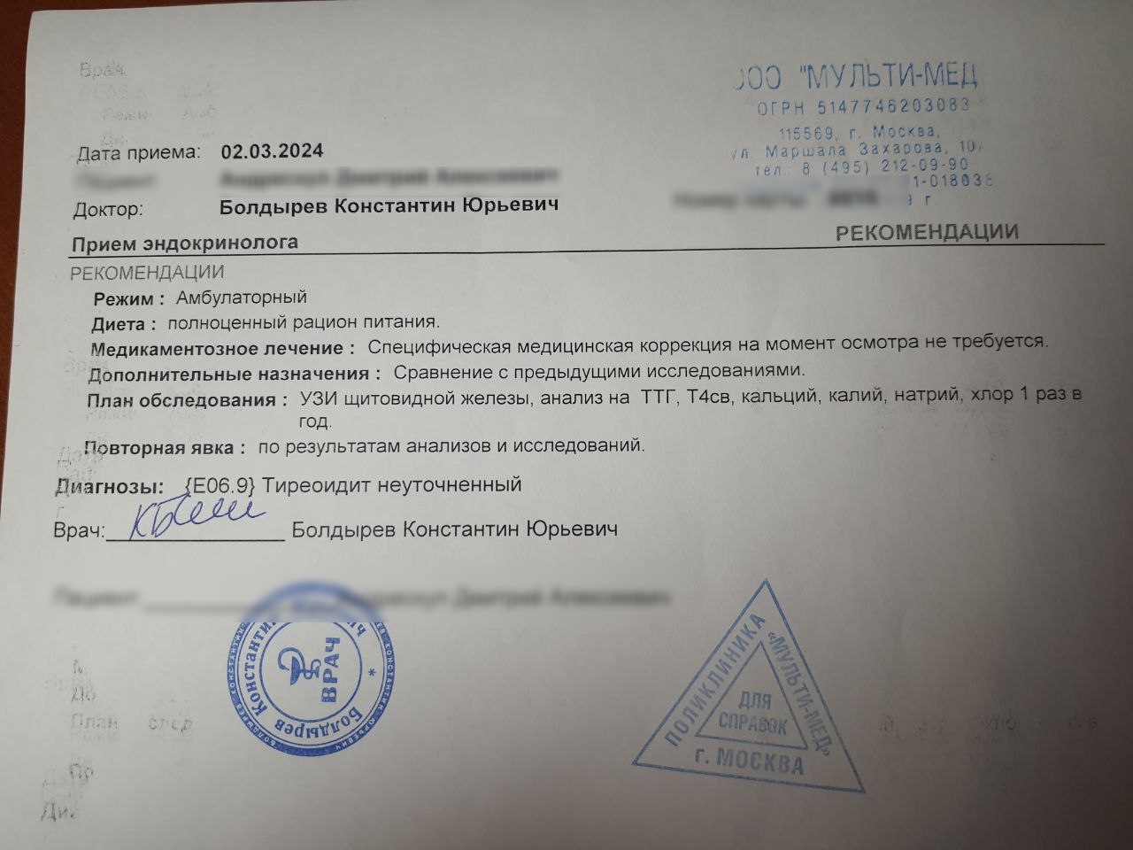dca5683 писал(а):Добрый день. Обследовался у эндокринолога в двух поликлиниках. Документы прикрепляю. Есть ли возможность претендовать на отсрочку или освобождение?