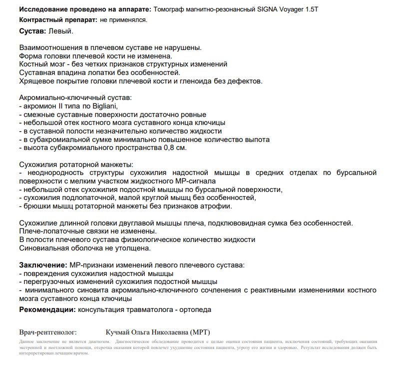 - брюшки мышц ротаторной манжеты без признаков атрофии.