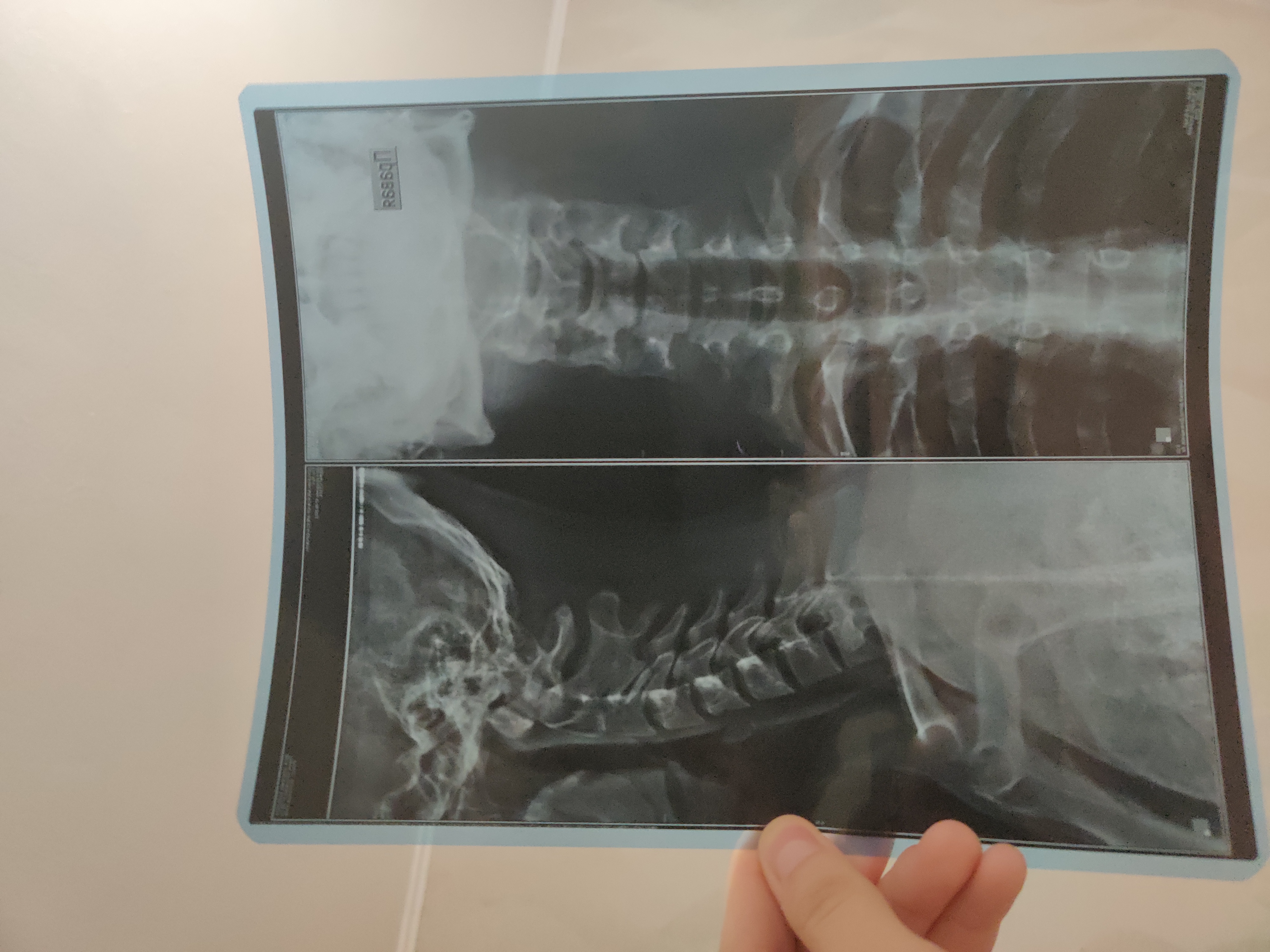 Травма позвонков C2-C3 была зафиксирована еще в младенчестве. Появился остеохондроз и спондилез.