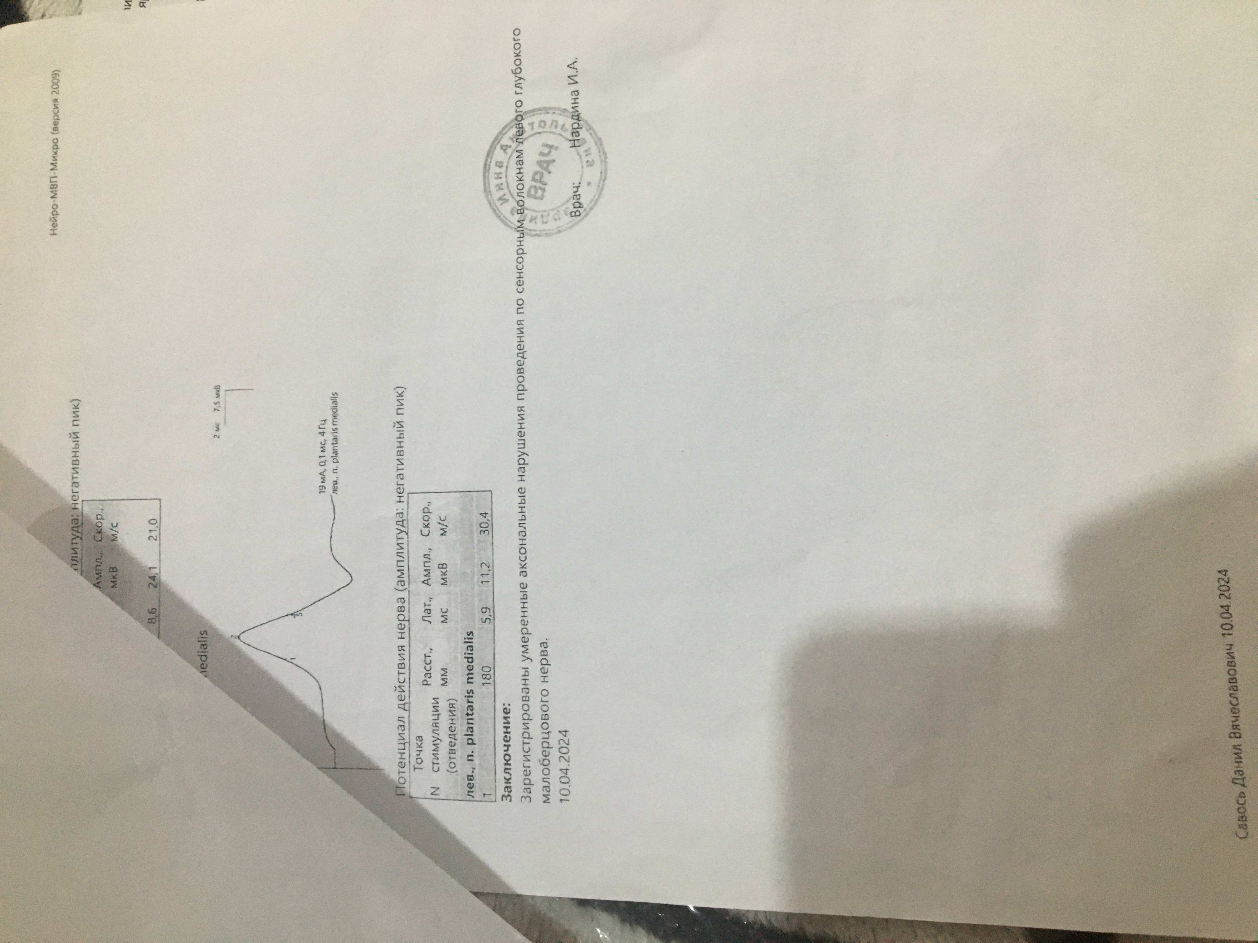 данил5193 писал(а):Aleksey Info писал(а):данил5193 писал(а):Здравствуйте, ещё раз. Меня отправили на Энмг ног и к неврологу, я решил заранее платно пройти ноги и ещё и руки (тоже болят), чтобы предъявить если данные будут отличаться. По ним у меня где-то нейропатия малоберцового нерва или нет, но нарушения есть. Какие должны быть нарушения функций, чтобы по 26 статье получить категорию В (прочитал все и не понял).