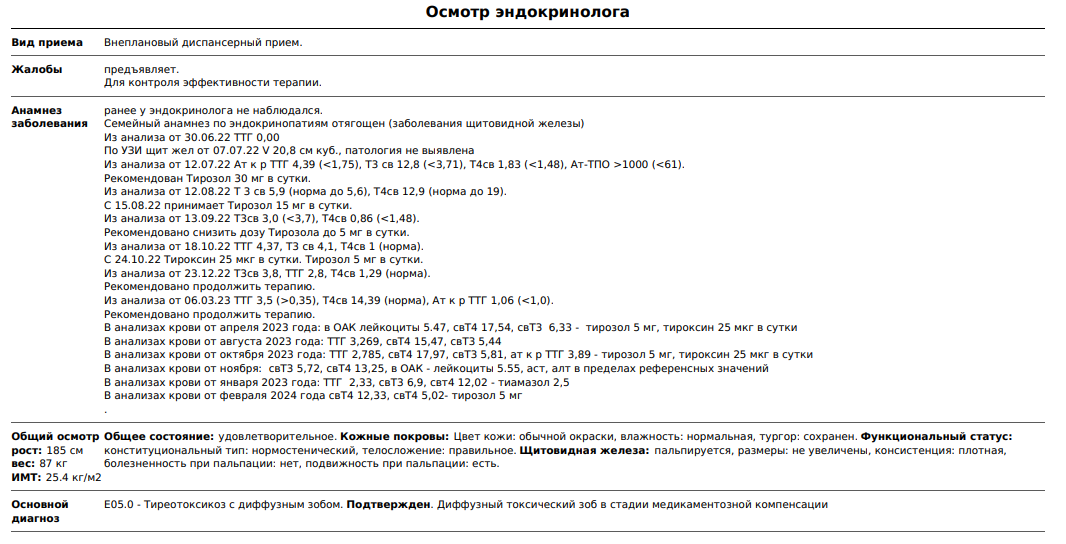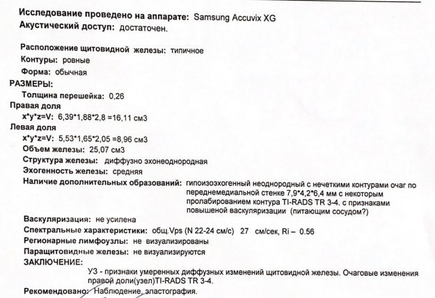 (ТТГ 0,00; Т3св 12,8 (<3,71); Т4св 1,83 (<1,48); Ат-ТПО > 1000 (<61); Ат-рТТГ 4,39 (<1,75))