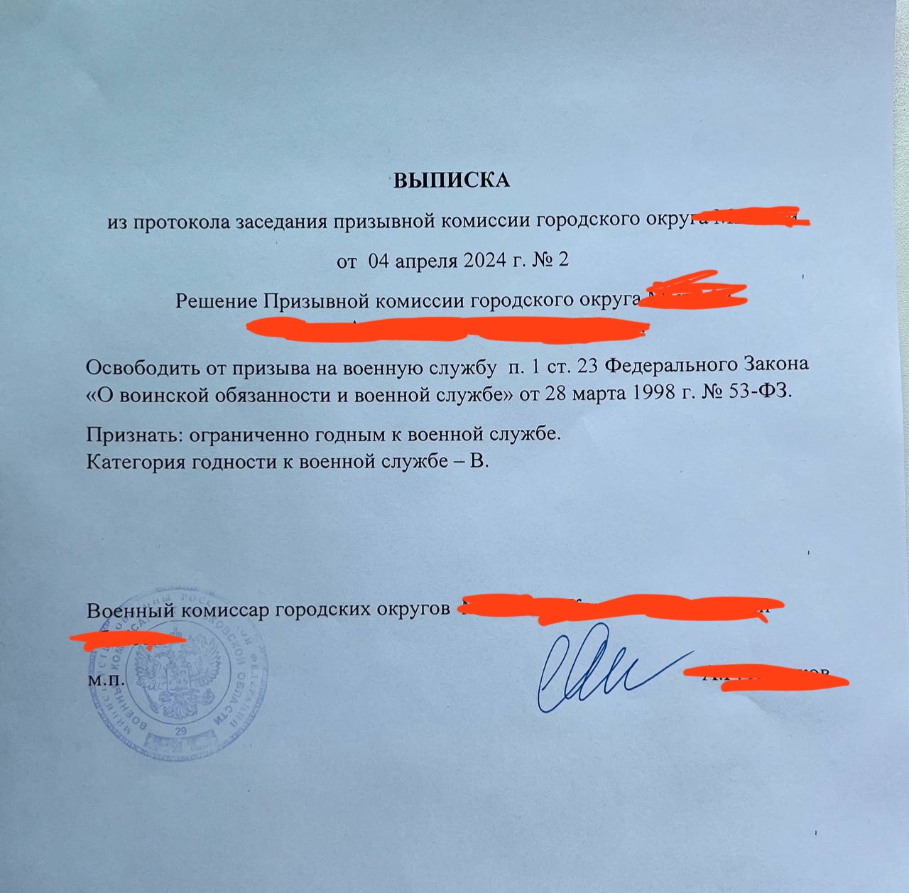 HAtURAL писал(а):Добрый день, хотелось бы узнать, как видно на выписке недавно получил категорию «В», но смущает момент что не прописан по какому диагнозу(статье) была получена «В», хотелось бы узнать что вообще должно быть в выписке, и данное отсутствие является критическим? Могу предположить что возможно мне не прописали потому что сказали что отправят дело в областной военкомат, а там будет/не будет КМО (утверждение категории)