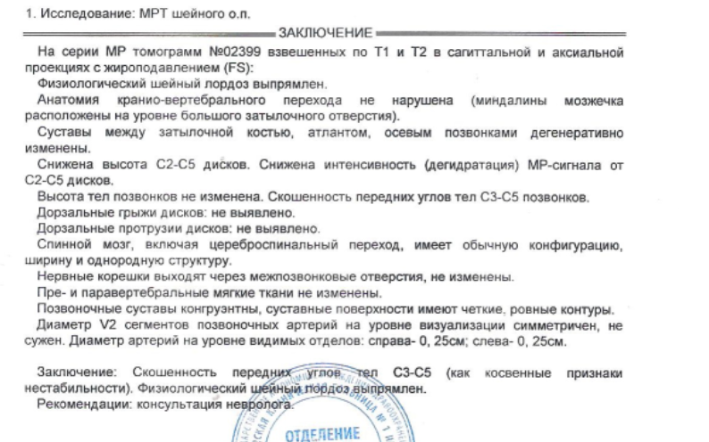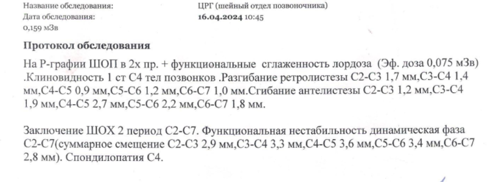 «Шейный остеохондроз 2 период С2-С7» (Нестабильность шейного отдела позвоночника С2-С7) Р-графия шоп ГБУЗ
