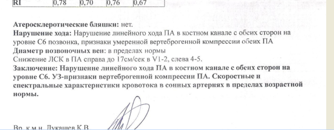 9 УЗ-признаки вертеброгеннной компрессии обеих ПА