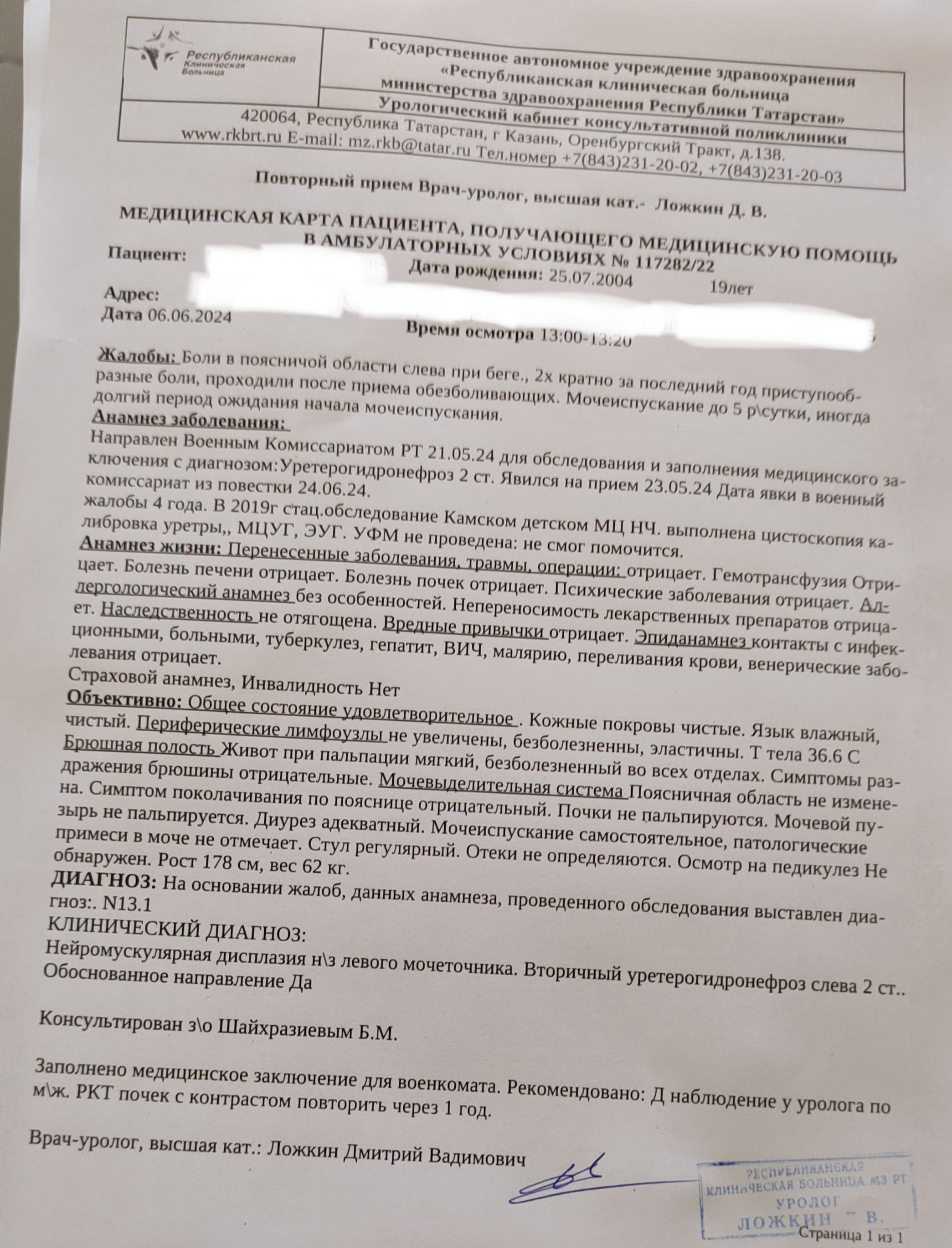 drag_02 писал(а):Военкомат направил на обследование по подозрению уретерогидронефроза 2 ст.