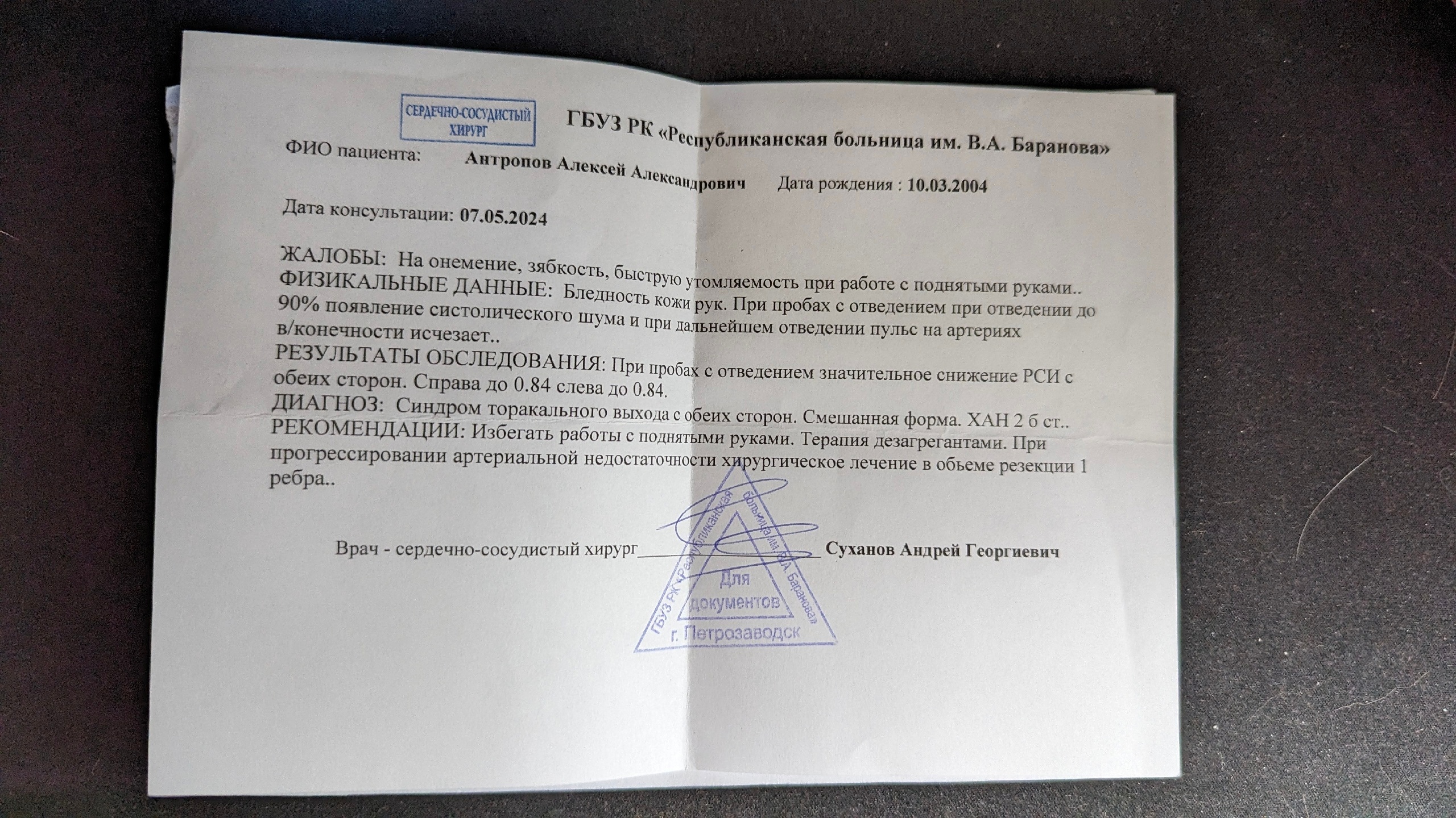 ant1toy писал(а):Здравствуйте. Подскажите пожалуйста, на какую категорию годности я могу рассчитывать с данным заболеванием? Синдром торакального выхода. Смешенная форма. ХАН 2Б ст.