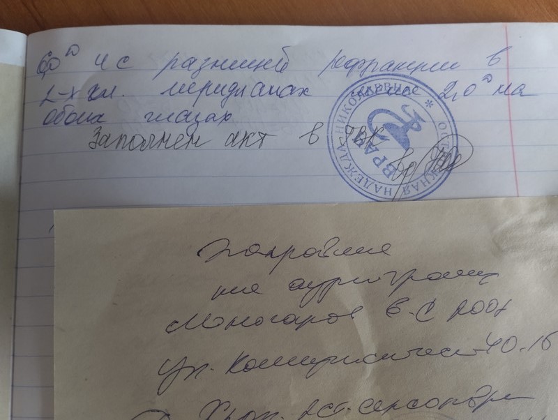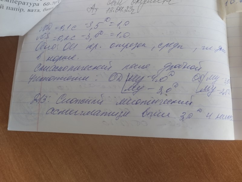 Добрый день. Прикрепляю три фотографии, первые 2 за прошлый год при осмотре у офтальмолога, третья - сегодняшняя. Изначально писали "Сложный астигматизм", сейчас его нет, но зрение вроде как ухудшилось. Помогите разобраться что к чему, какой все-таки минус, на какую категорию мое зрение, надо ли пойти как-то оспаривать или дообследоваться? Спасибо заранее)